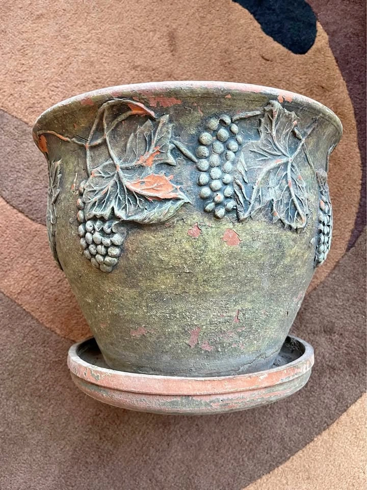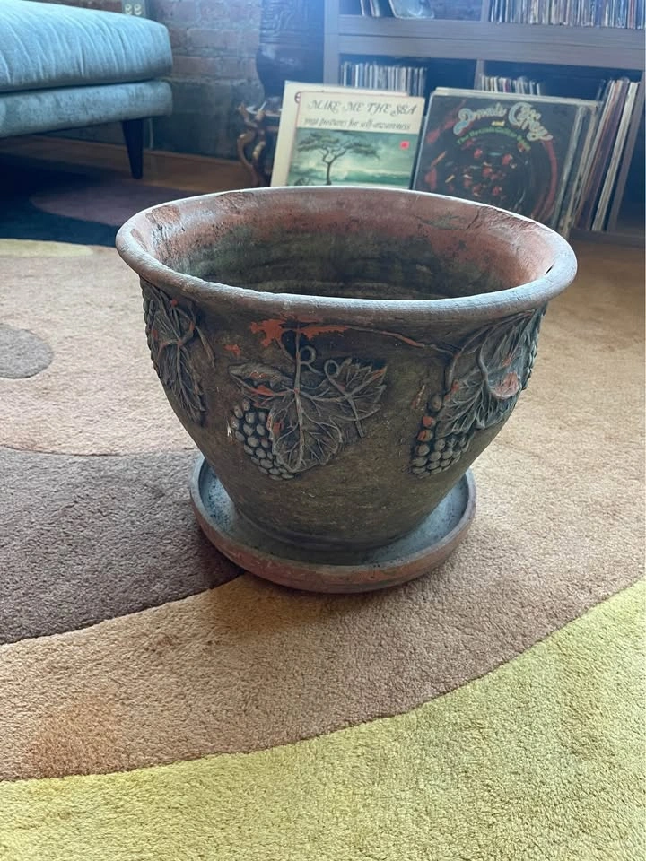 Vintage Painted Terra Cotta Planter Large Size