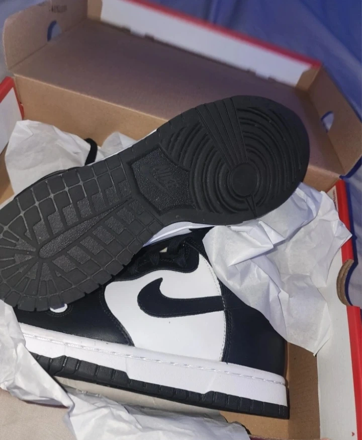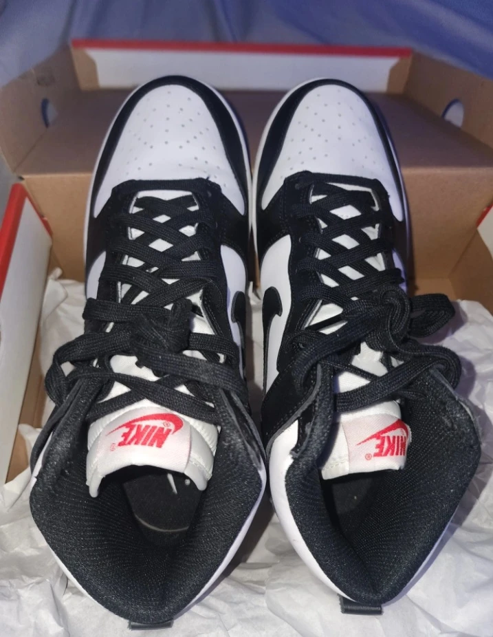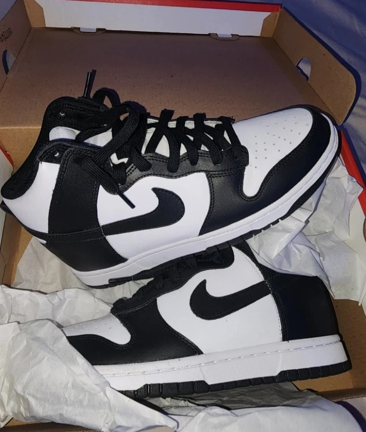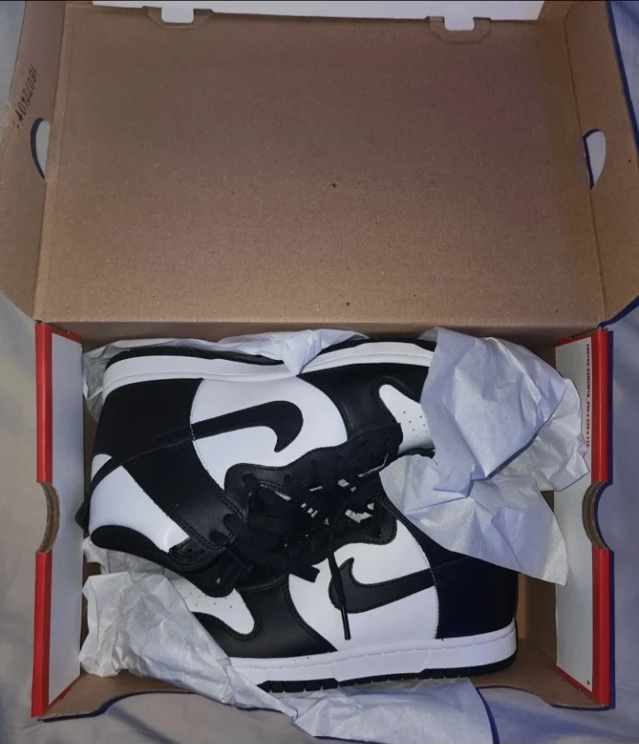 Selling a pair of Nike Dunk High Panda shoes! They come with the original box. These shoes feature a classic black and white colorway that goes with just about anything. Don't miss out!