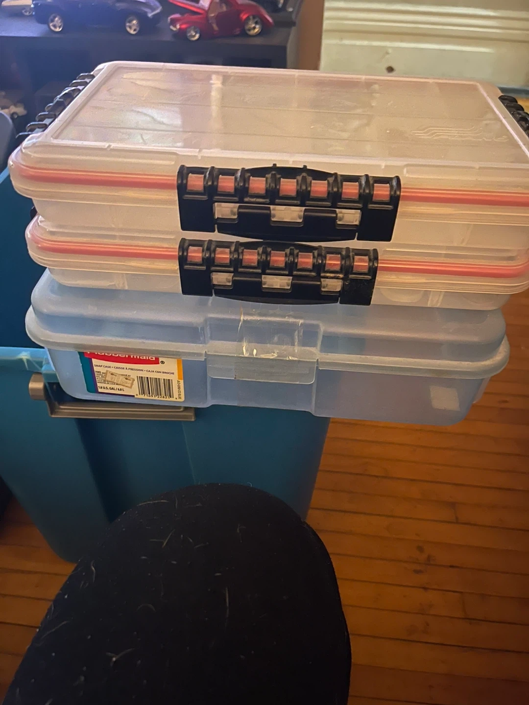 Selling a Rubbermaid Snap Case storage container. It's perfect for organizing your belongings! All three for 20 all in excellent condition great for organizing tiny parts using the garage using the tool crib