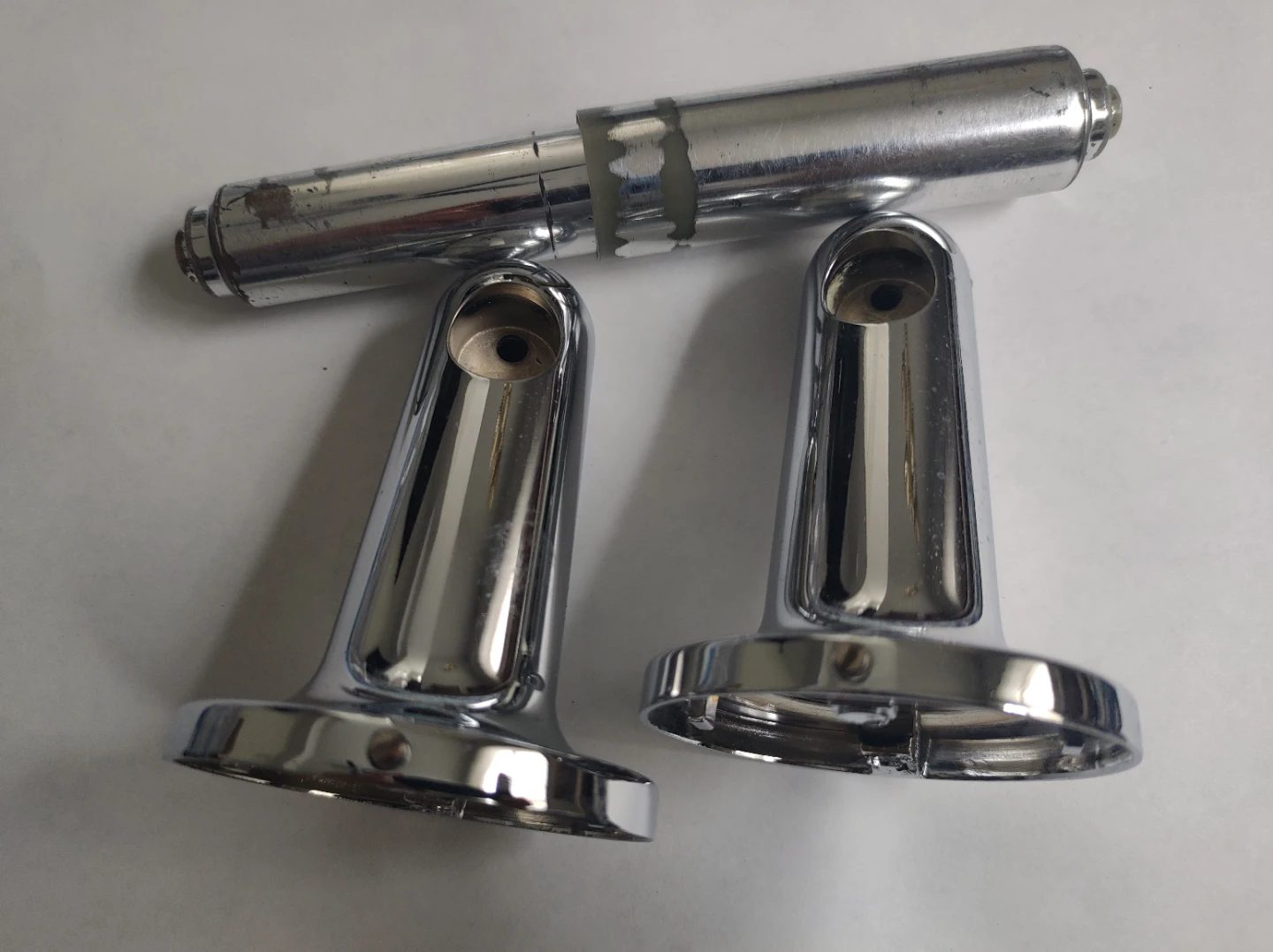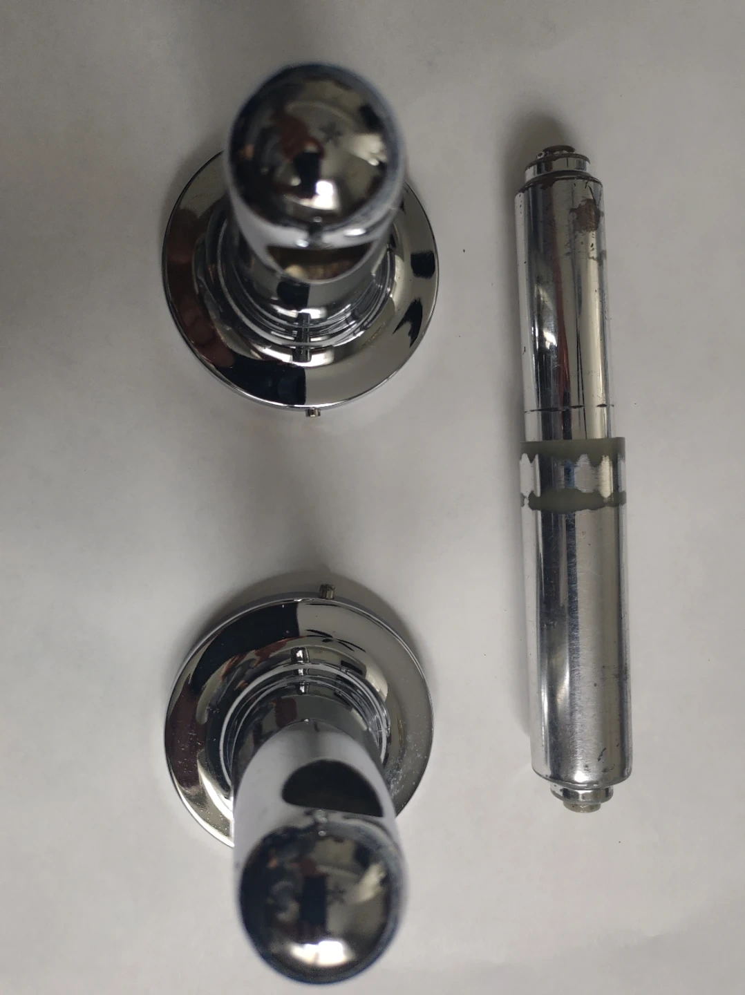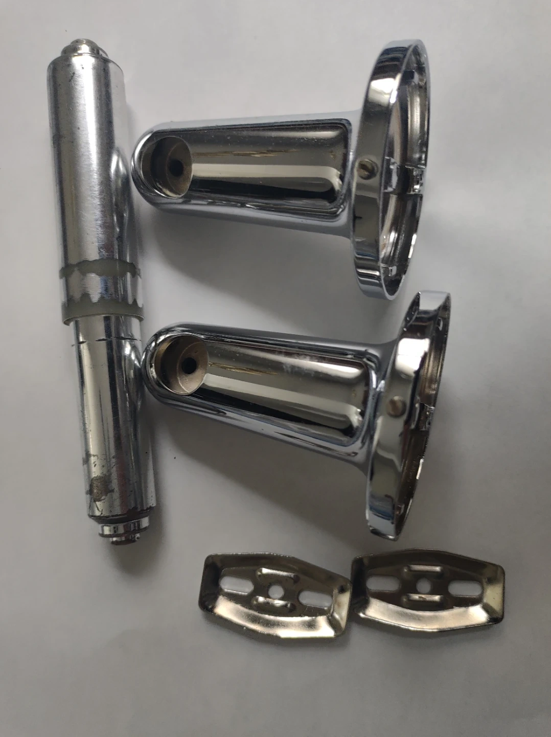Franklin Brass toilet paper holder. It shows some signs of wear, but it's still functional and ready to use! Includes the mounting brackets.