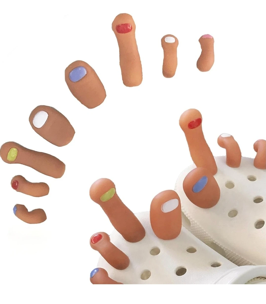 Add some fun to your Crocs with these unique Jibbitz charms! They're shaped like toes with painted nails. Perfect for customizing your Crocs and making a statement