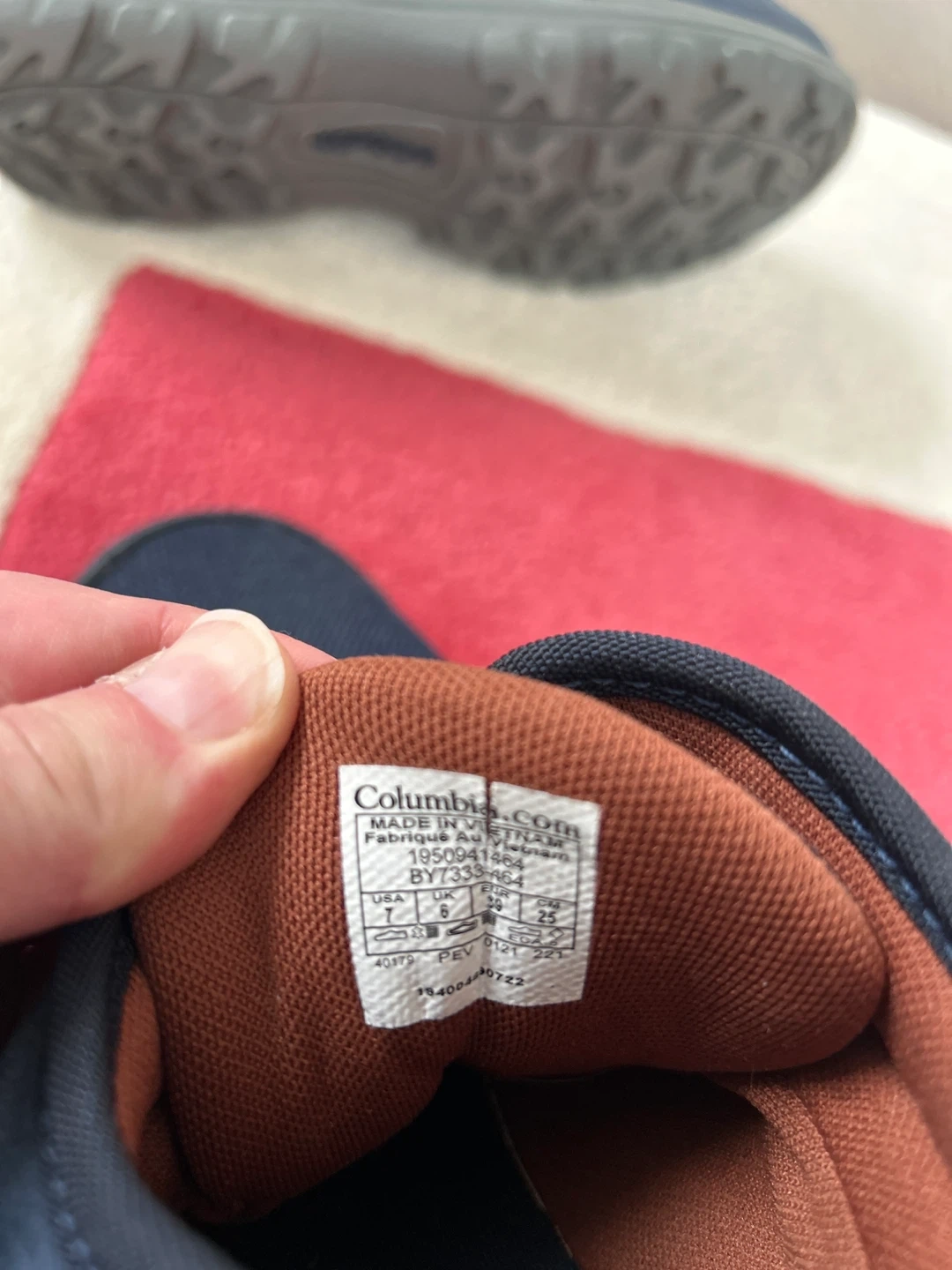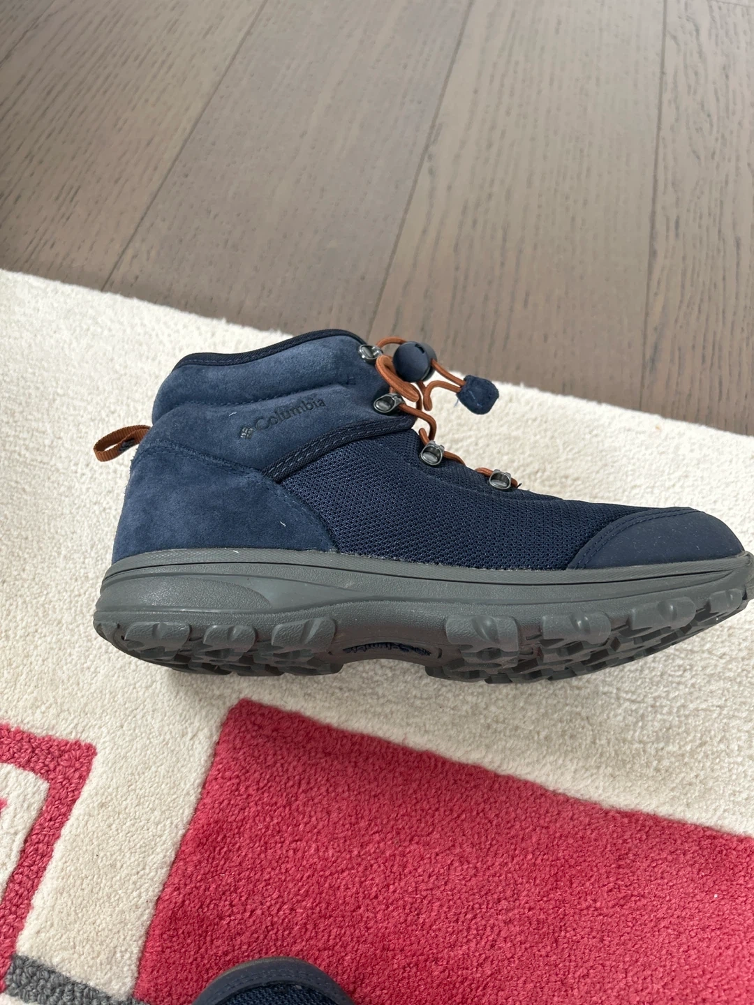 Selling a pair of Columbia Newton Ridge waterproof hiking boots in size 7. These boots are made in Vietnam and feature a navy blue color. They are perfect for hiking and outdoor activities!