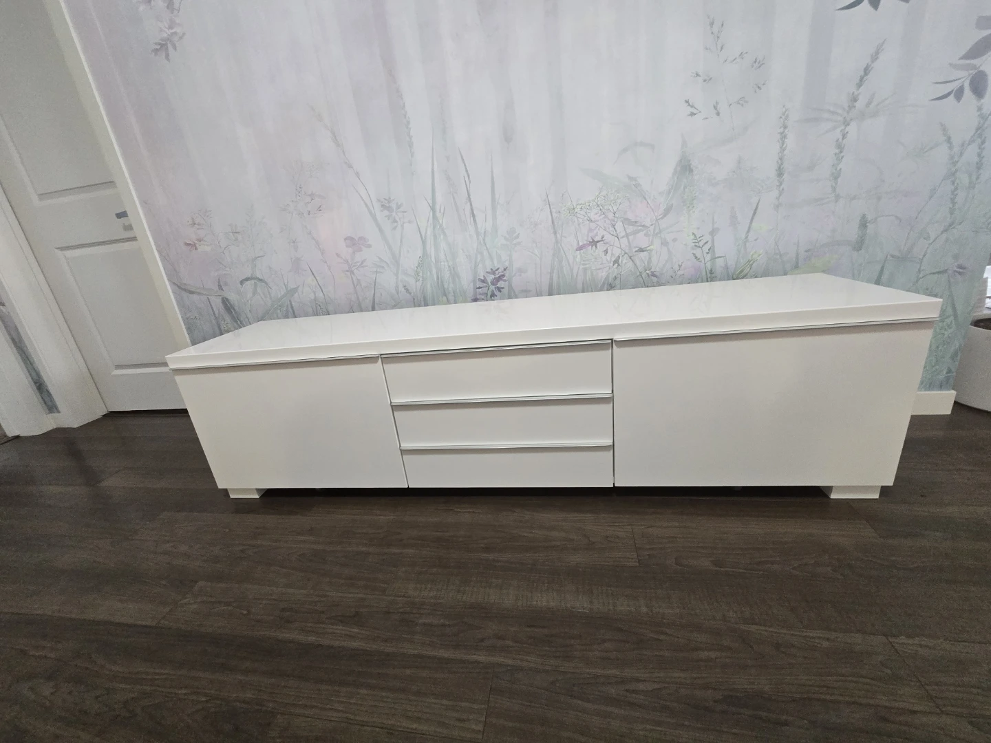 Selling a white TV stand or cabinet. It's in great condition hardly used, looks brand new and ready for a new home. Perfect for organizing your living room and adding a touch of modern style