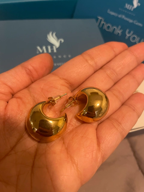 Add a bold yet timeless touch to your jewelry collection with these small chunky gold hoop earrings. Crafted from genuine 14K gold plated, they’re designed to bring effortless elegance to any look — day or night.