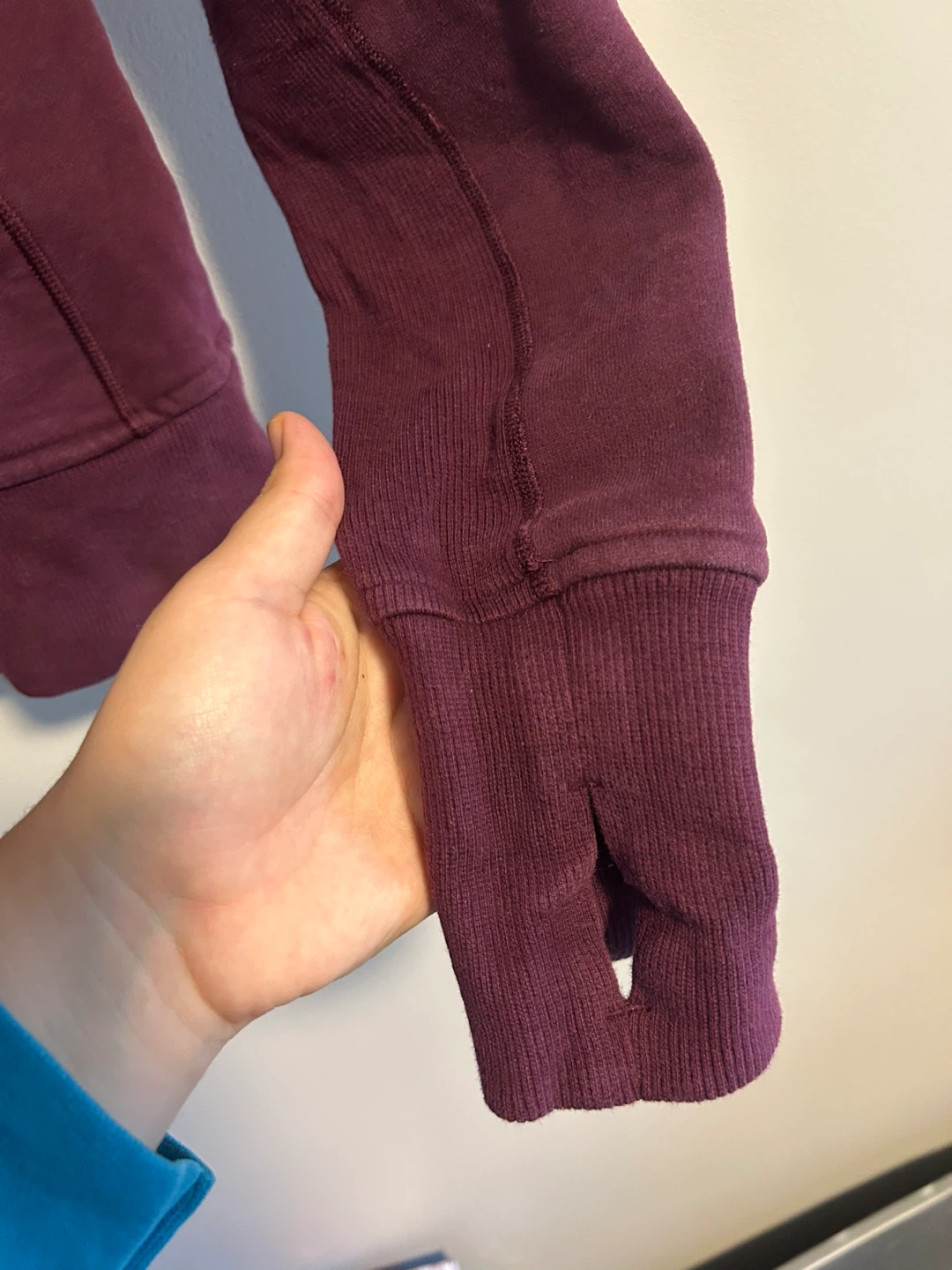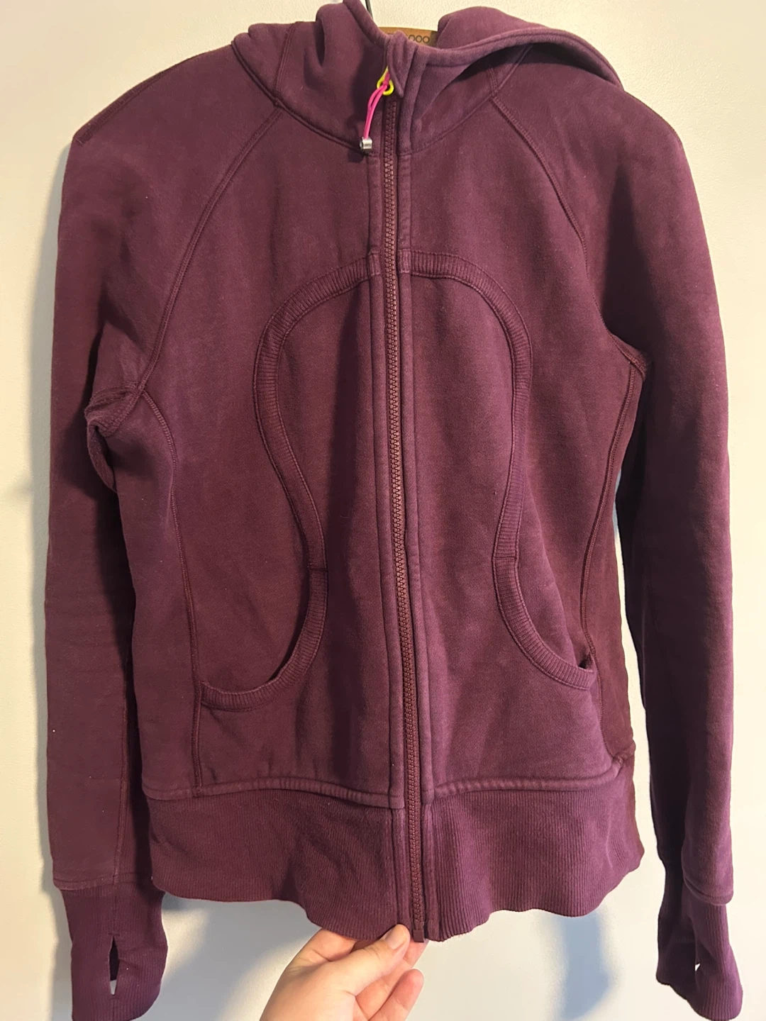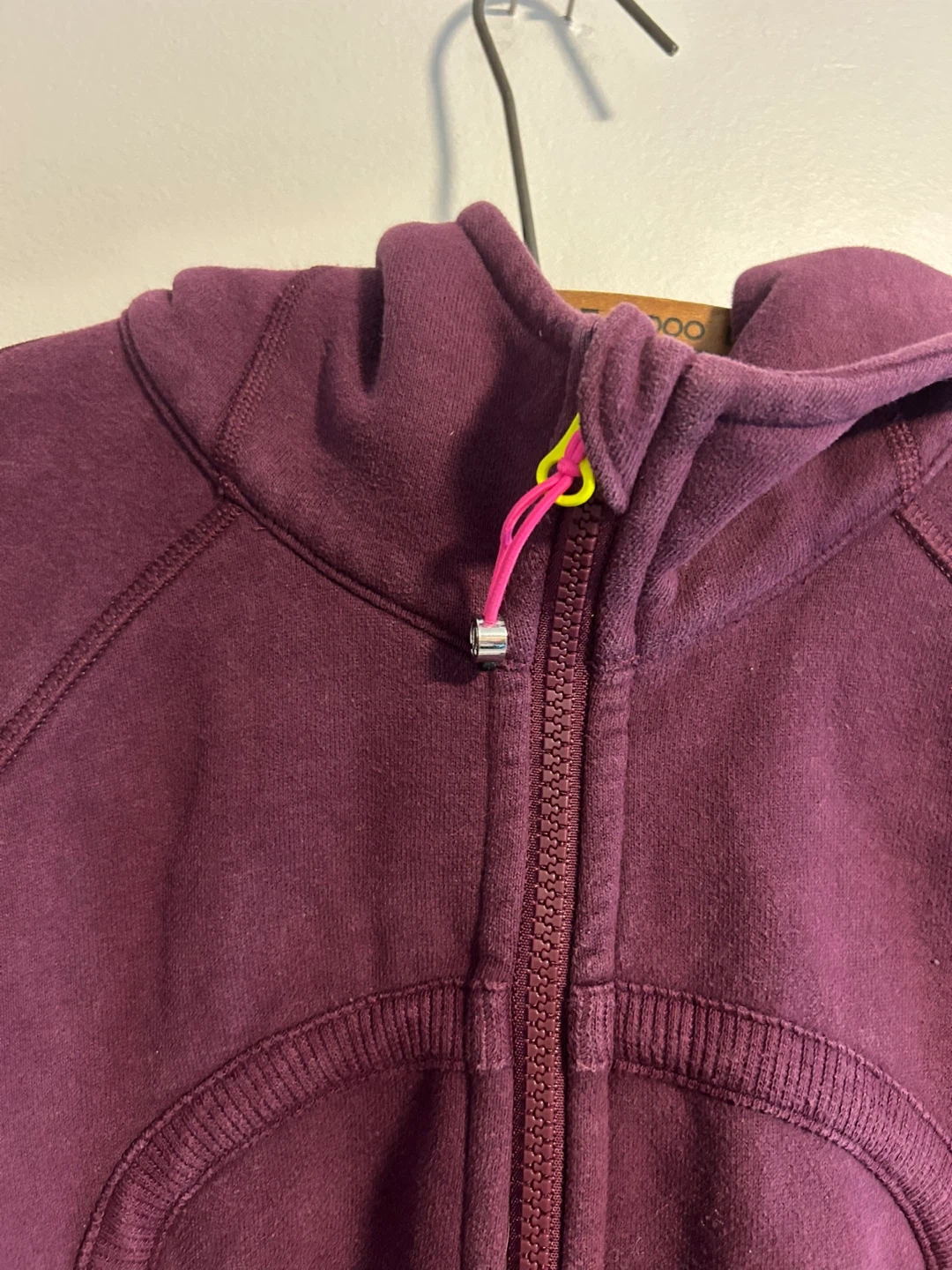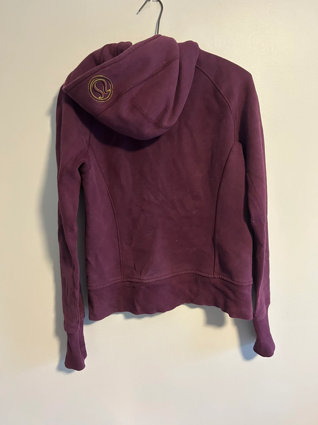 Lululemon brand. Zip up hooded scuba sweater. Purple in colour. Size women’s 8. Brand new condition
