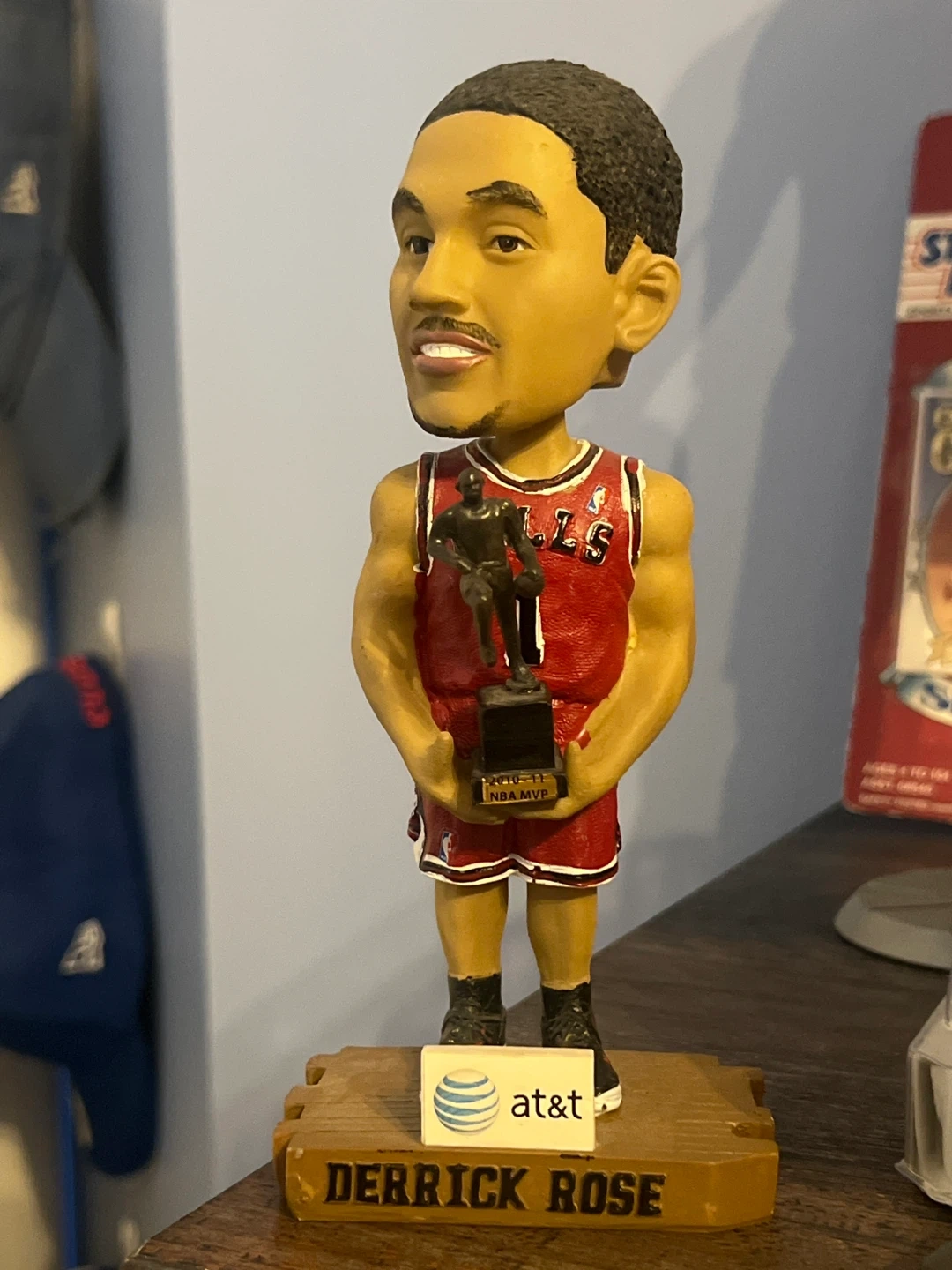Selling a Derrick Rose bobblehead figure. He's wearing his Chicago Bulls jersey and holding his 2010-11 NBA MVP trophy. The base has Derrick Rose's name on it