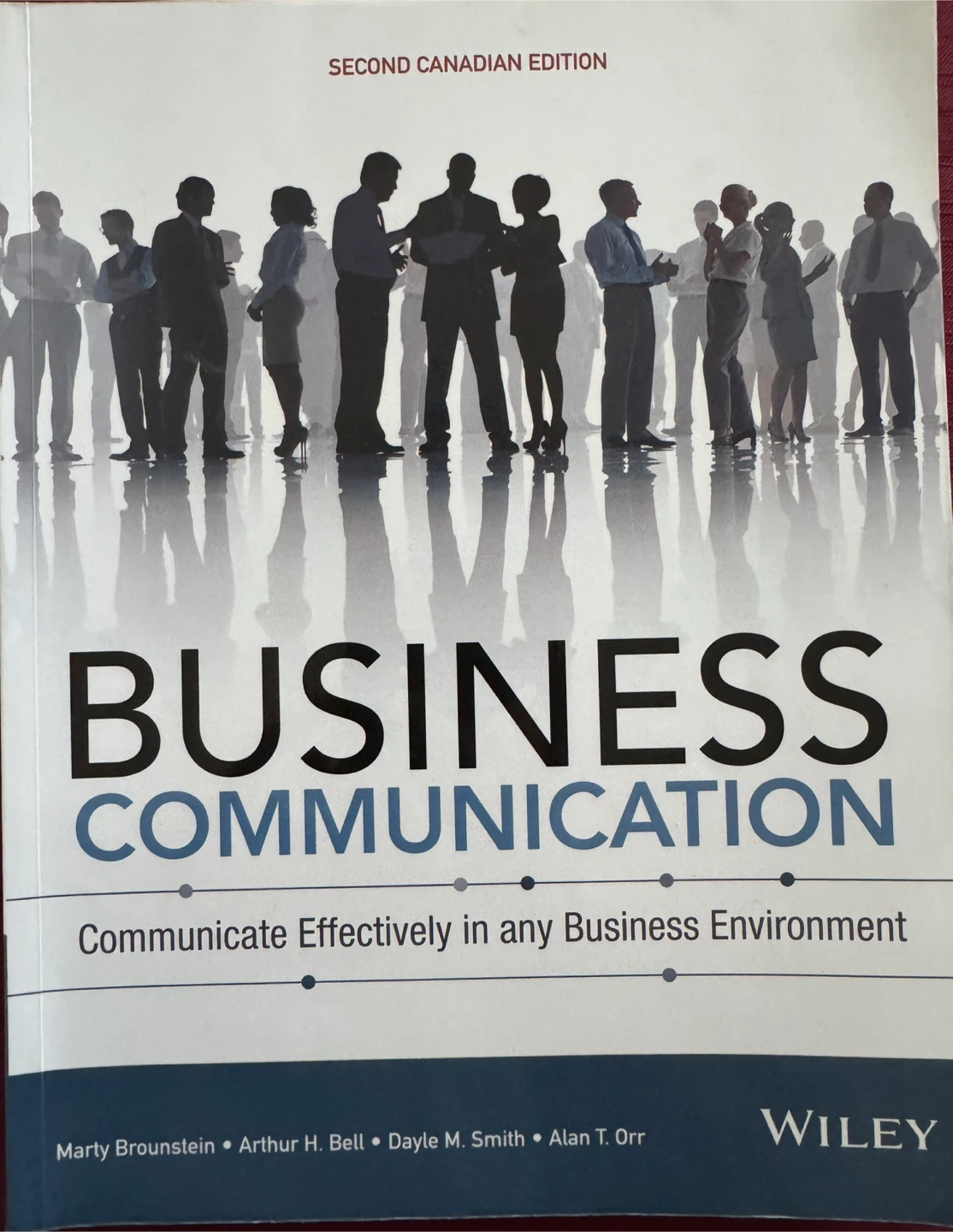 Selling a copy of Business Communication, Second Canadian Edition, by Marty Brounstein, Arthur H. Bell, Dayle M. Smith, and Alan T. Orr. It's a Wiley publication. Great for anyone studying business!