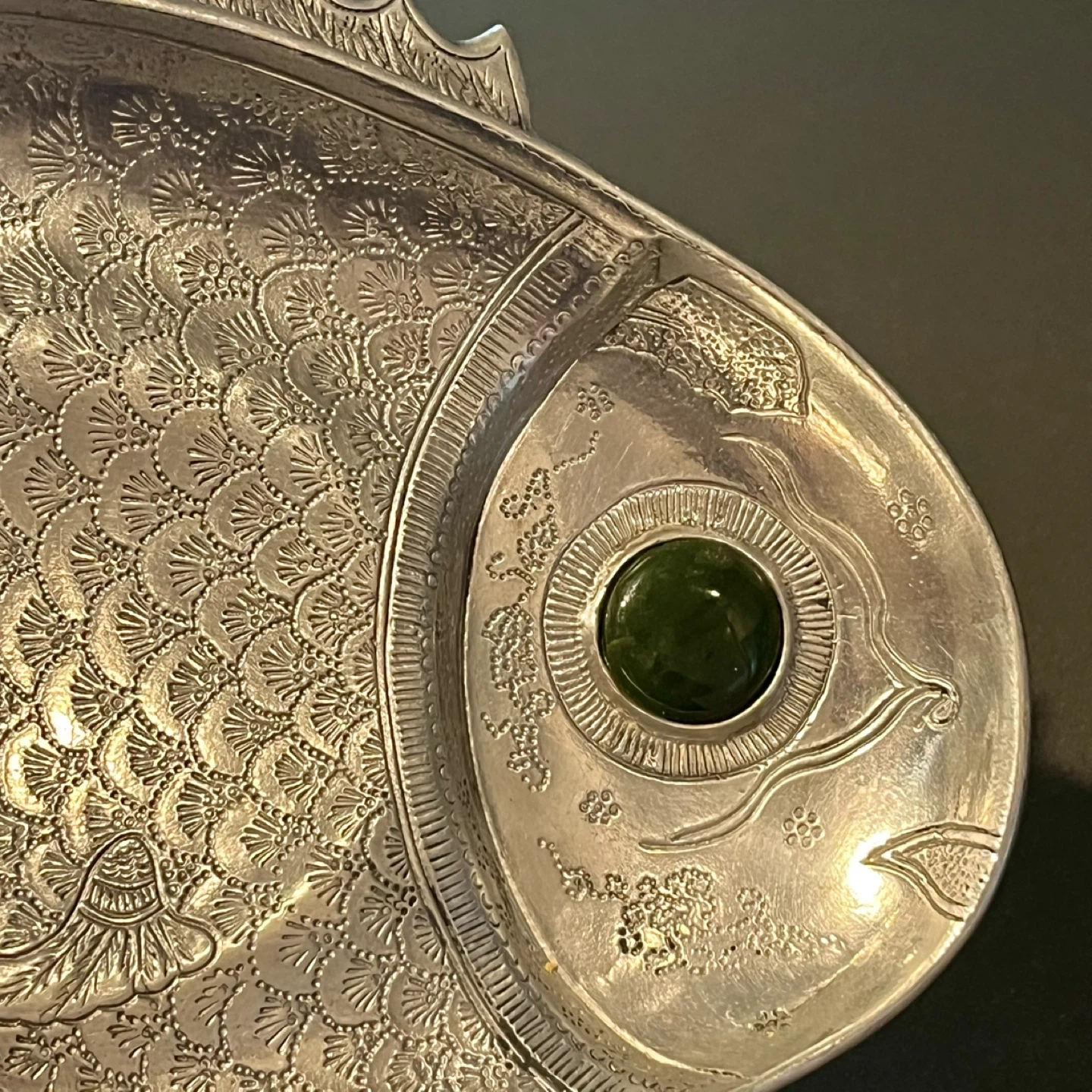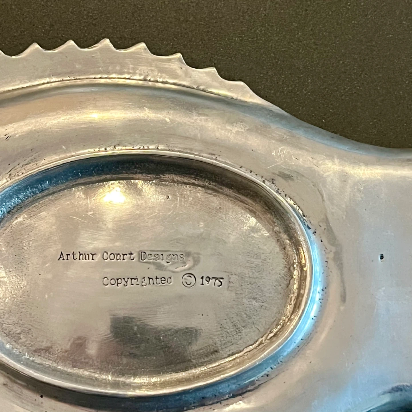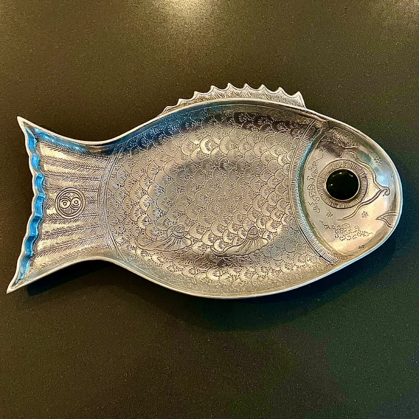 Arthur Court Vintage 1975 Fish Platter with Green Agate Eye
