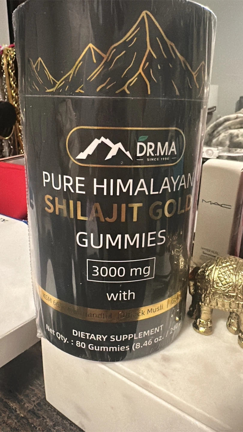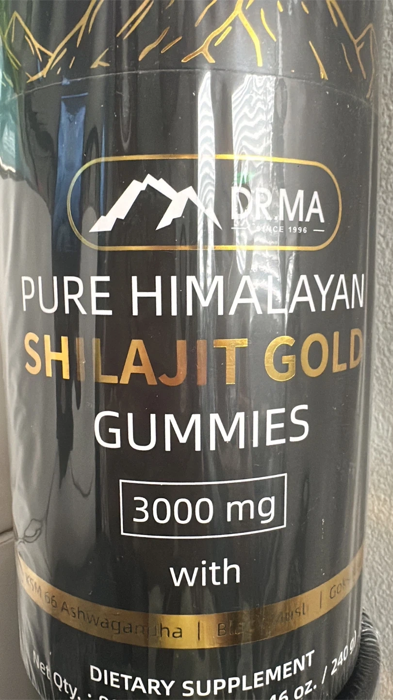 Selling a container of DR. MA Pure Himalayan Shilajit Gold Gummies. These gummies contain 3000 mg of Shilajit and are 100% vegan and gluten-free. The container has 80 gummies with a net quantity of 8.46 oz / 240 g. They also include KSM 66 Ashwagandha, Black Musli, and Gokshura. Enjoy these gummies as a dietary supplement!