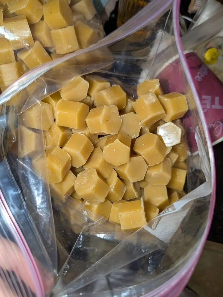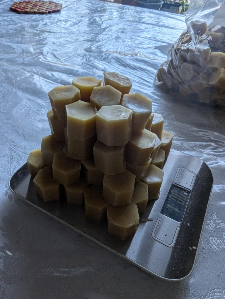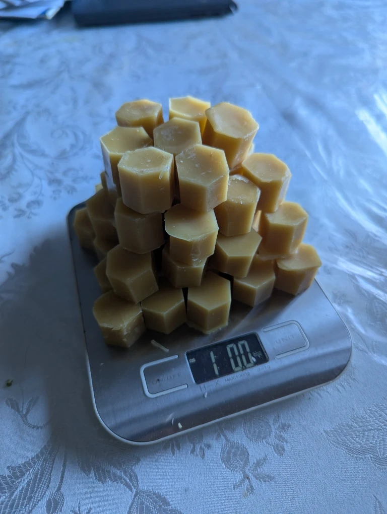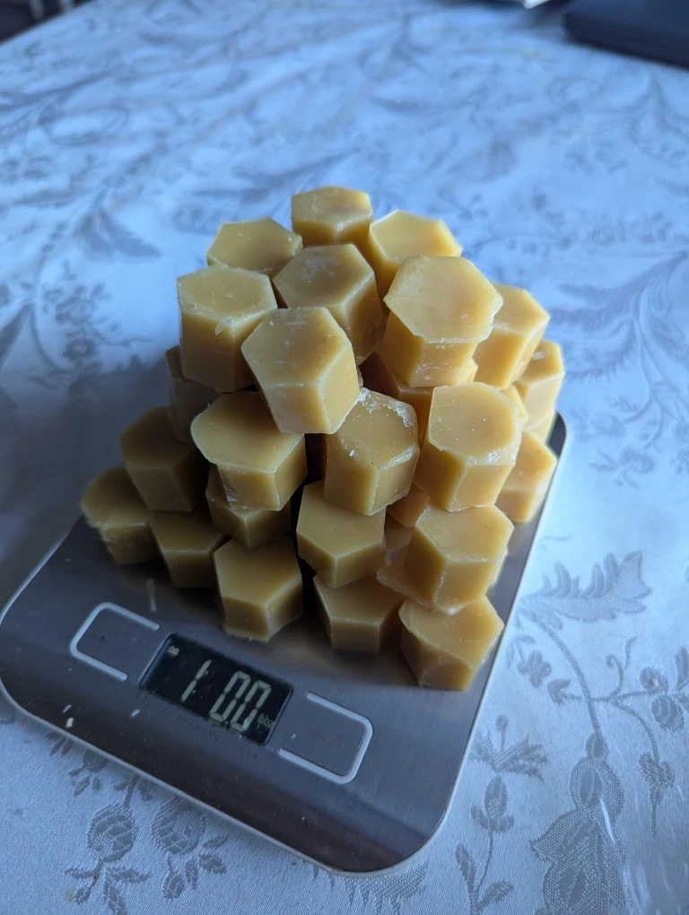 Selling these small honey comb pieces of beeswax. I will weigh out each pound for 15 dollars. Discount if you buy 4 pounds or more. They're already in small pieces so it's easier to melt. I poured them into a mold to make them that way. You can make lip balm, candles, woodworking wax, etc. Many many uses for this wax.