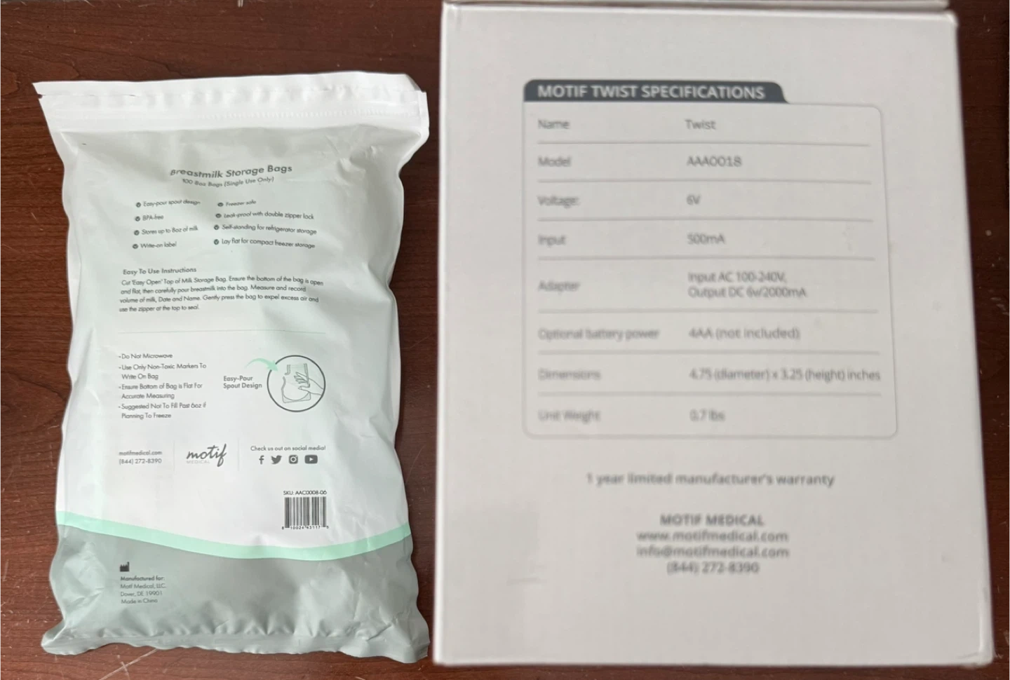 Selling a Motif Twist double electric breast pump. The specifications include: