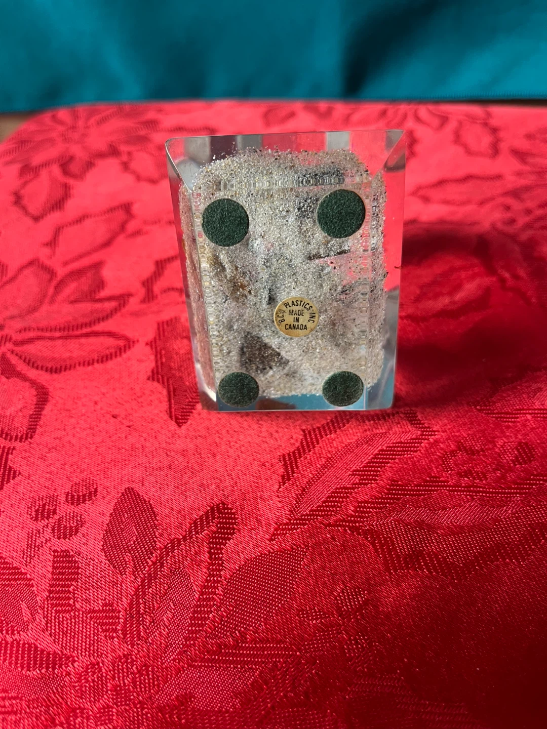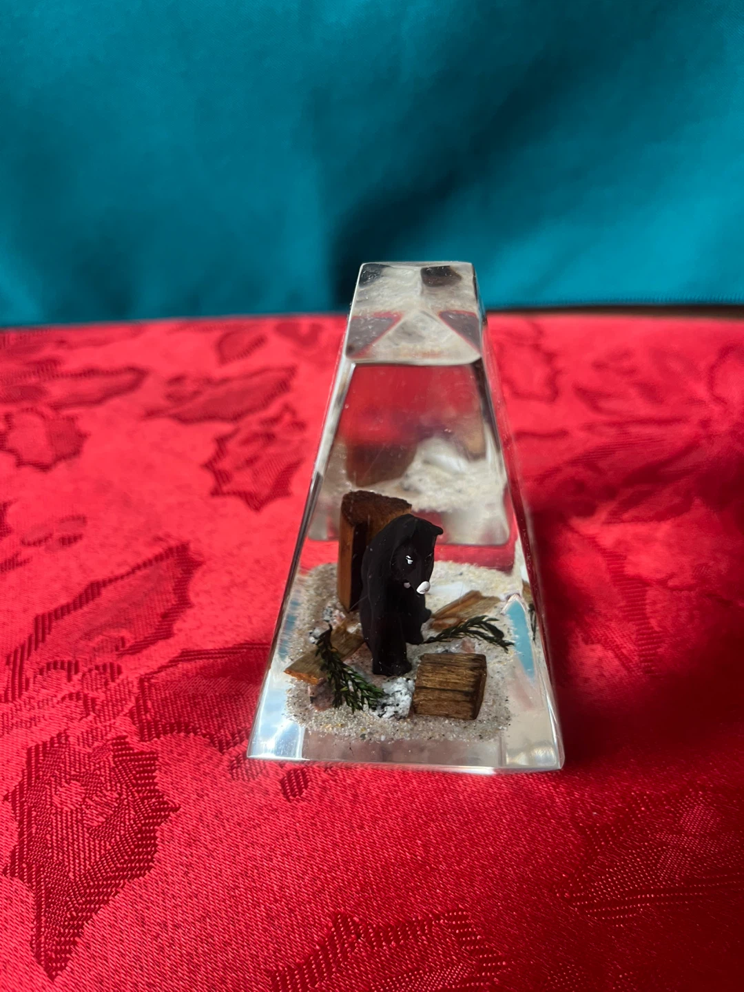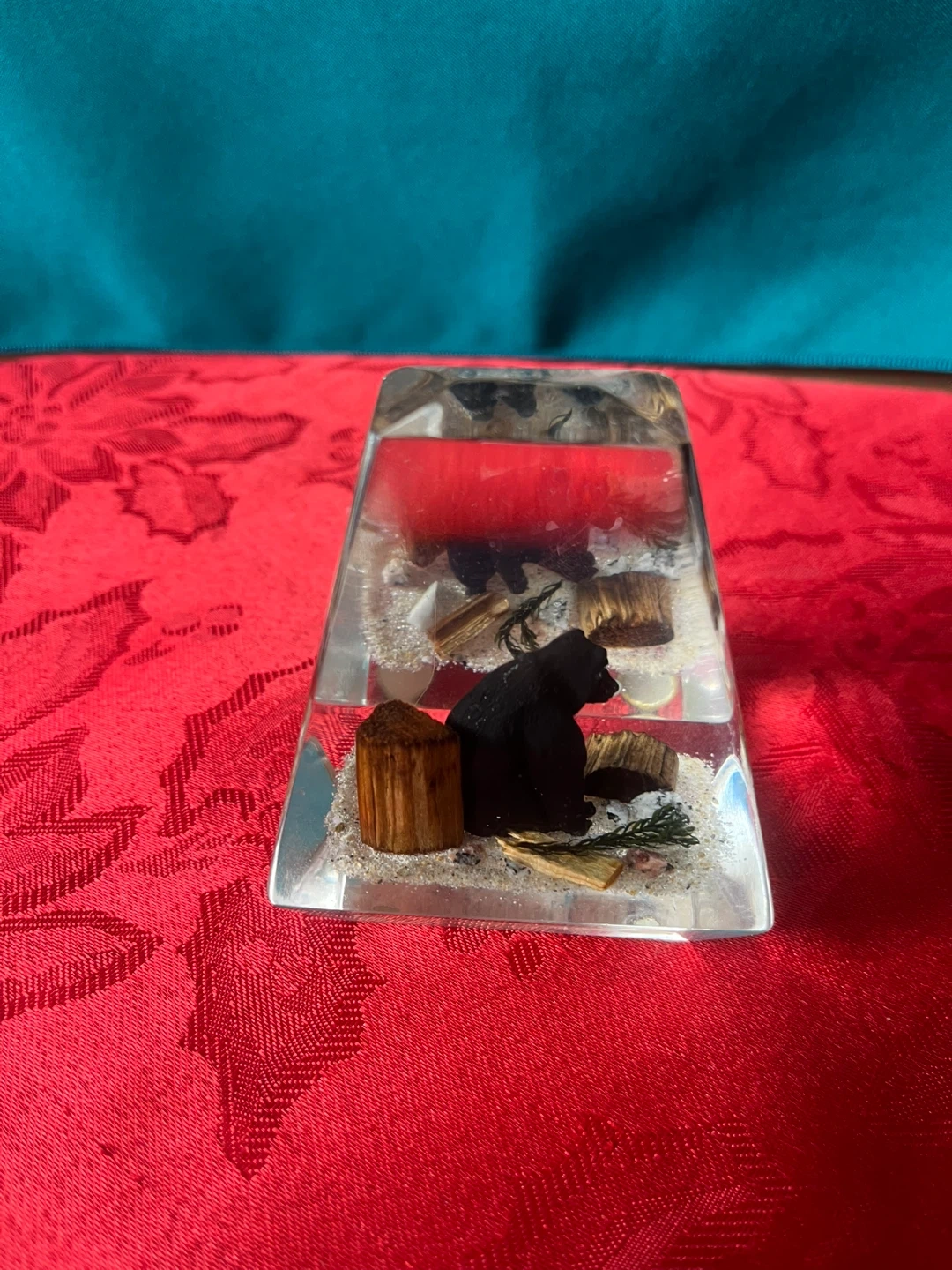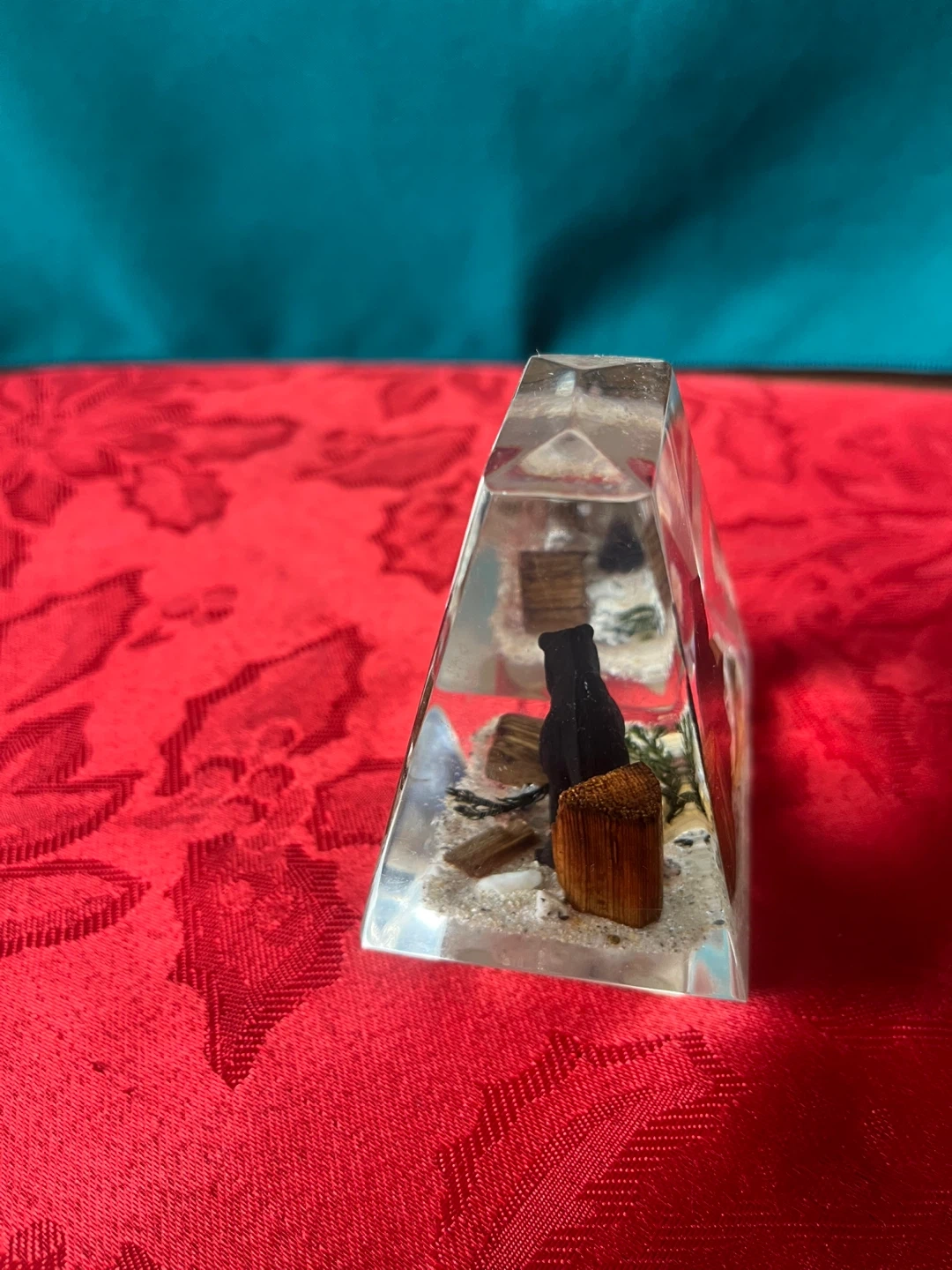 Here's a cute little vintage figurine or paper weight made in Canada! It features a black bear inside a clear lucite or acrylic block. It would be a great addition to any collection or as a unique decor piece for your home or office, or a great gift for a bear lover!
