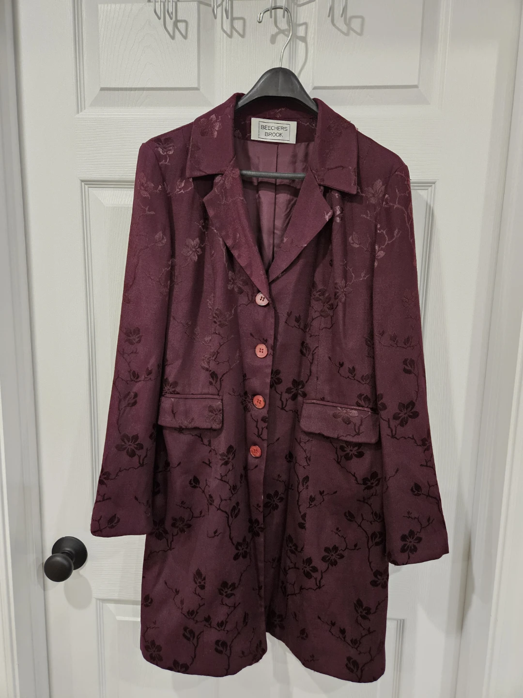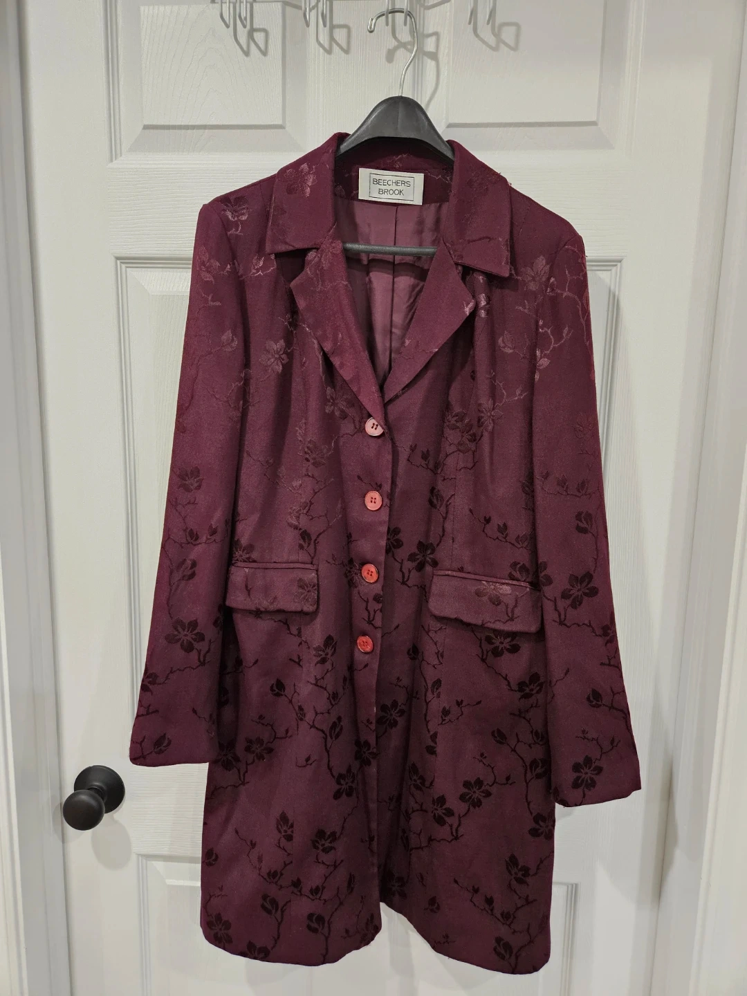 Beechers Brook blazer in a lovely burgundy colour with a floral pattern for sale. It's in great condition and is a women's size medium.