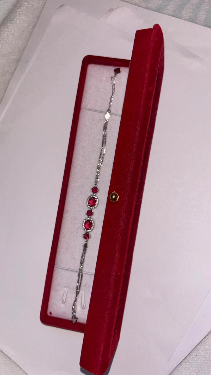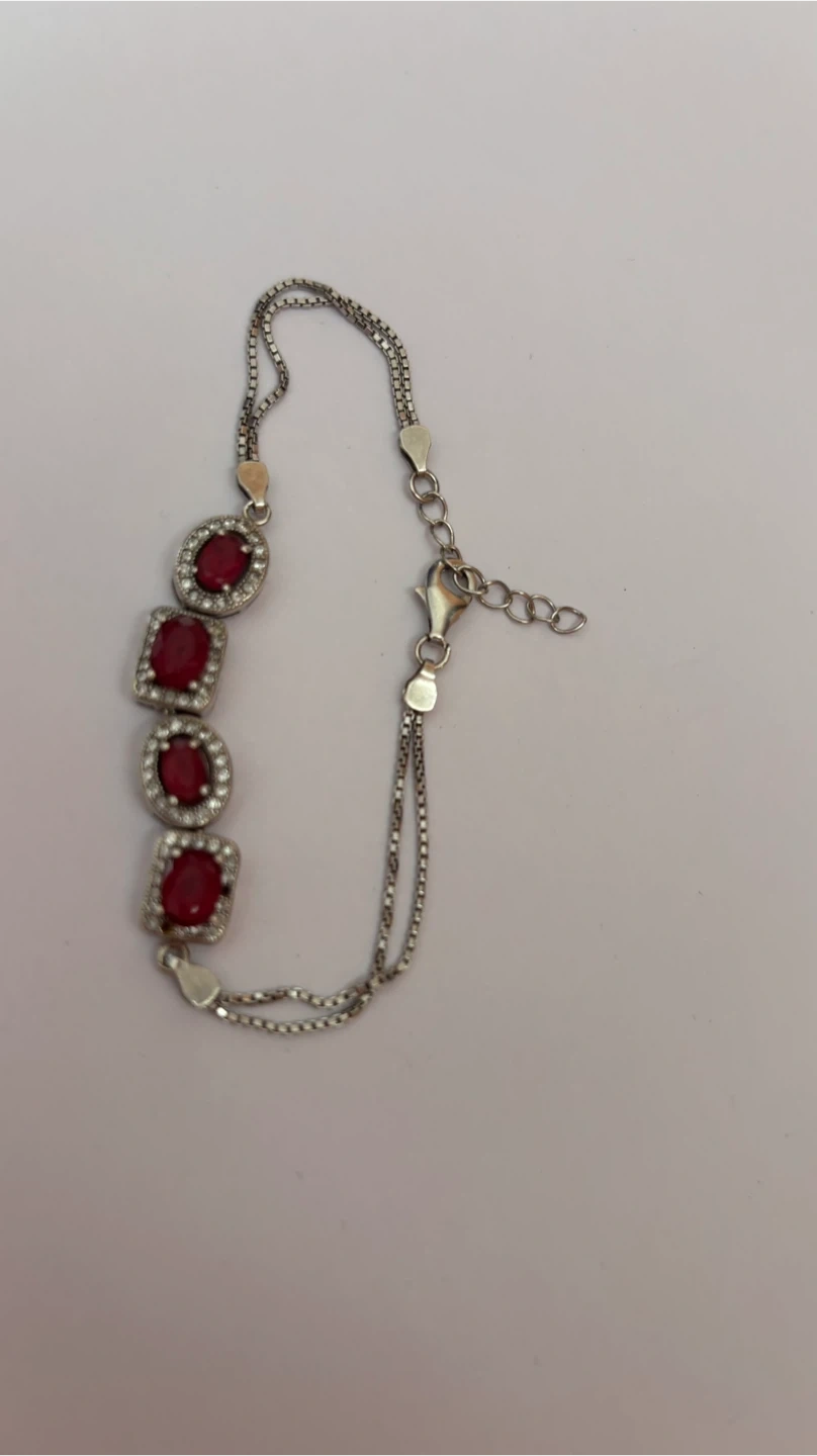 Selling a lovely silver bracelet featuring red stones. perfect for gifting or keeping it safe. The bracelet has a delicate design and is in great condition!