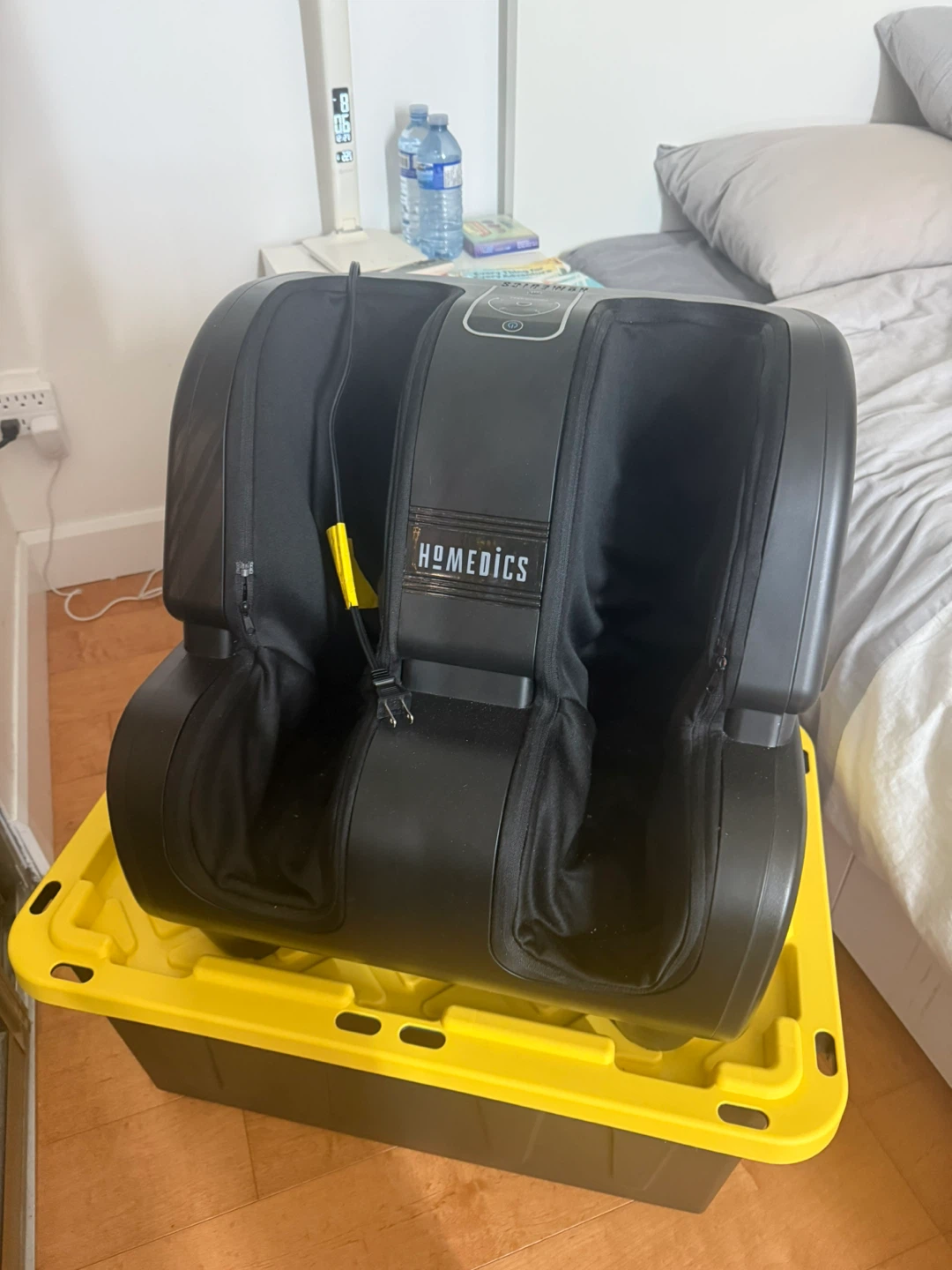 Selling my HoMedics foot and calf massager. It’s in good condition and works perfectly — I just don’t use it enough to keep it. It has adjustable settings for pressure and heat, and gives a really solid deep-kneading massage that’s great after long days on your feet. Only lightly used and kept in a smoke-free home.