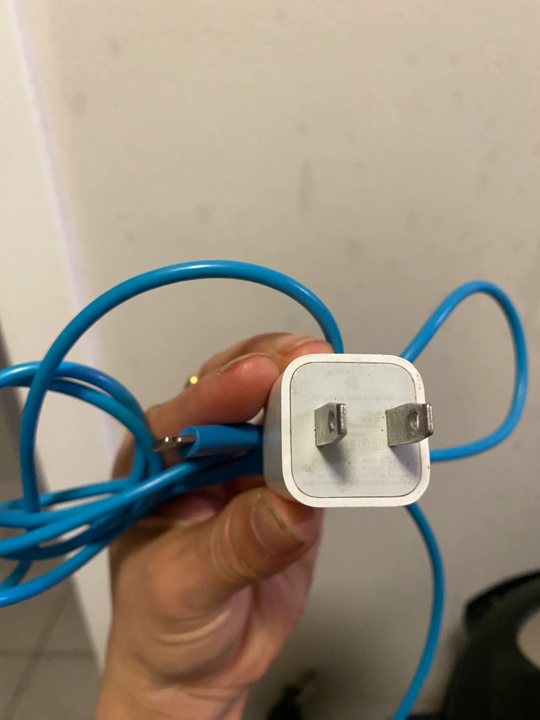 Selling an Apple charger with a unique blue cable! It's in great condition and ready to power up your devices blue cable is very long easy to use when you’re far