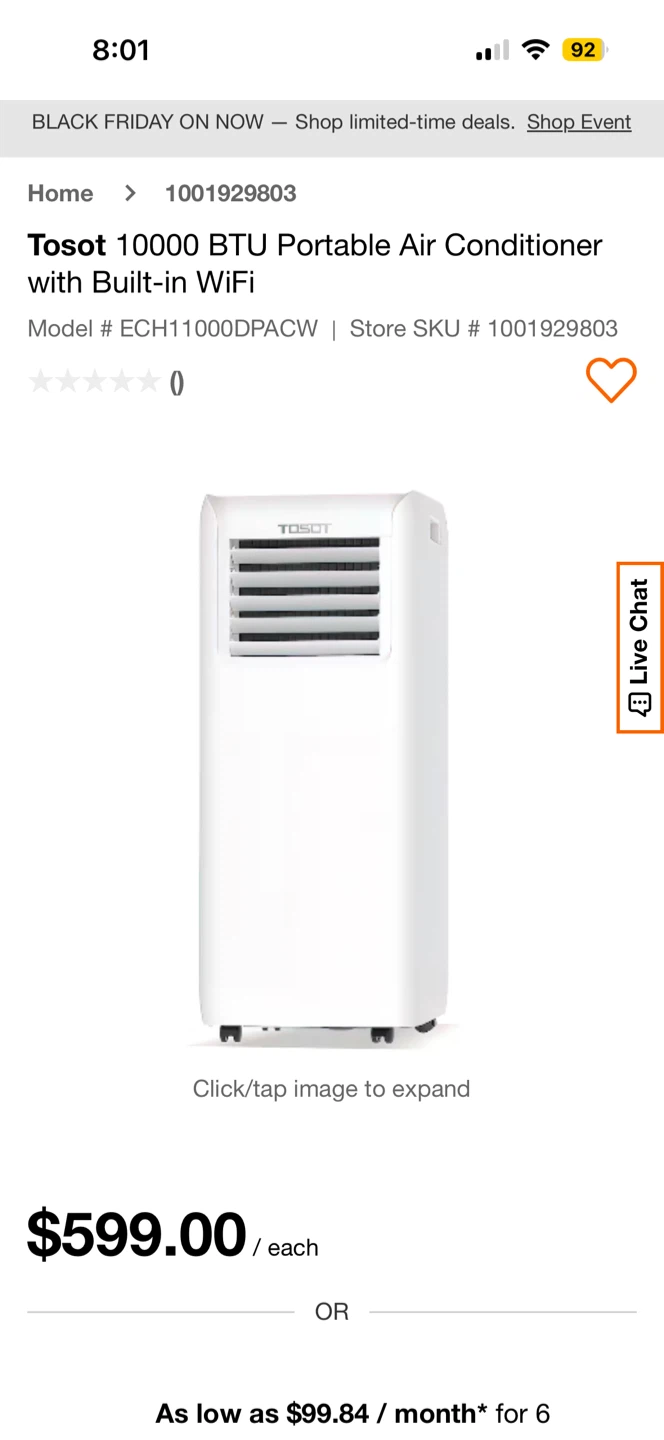 Selling because we’re moving and the new place and centralized air conditioning. In perfect condition and working great. It can cool up to 400 sq ft with the 10,000 BTU Portable AC, ideal for home offices, bedrooms, or living rooms.