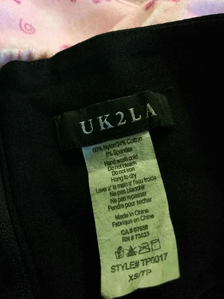 Black: UK2LA brand. Never worn, new without tags. Tag says xs, but fits tiny and I measured the waist to be same as size 6X. Stretchy high waisted with gold buttons. Zipper up back.
