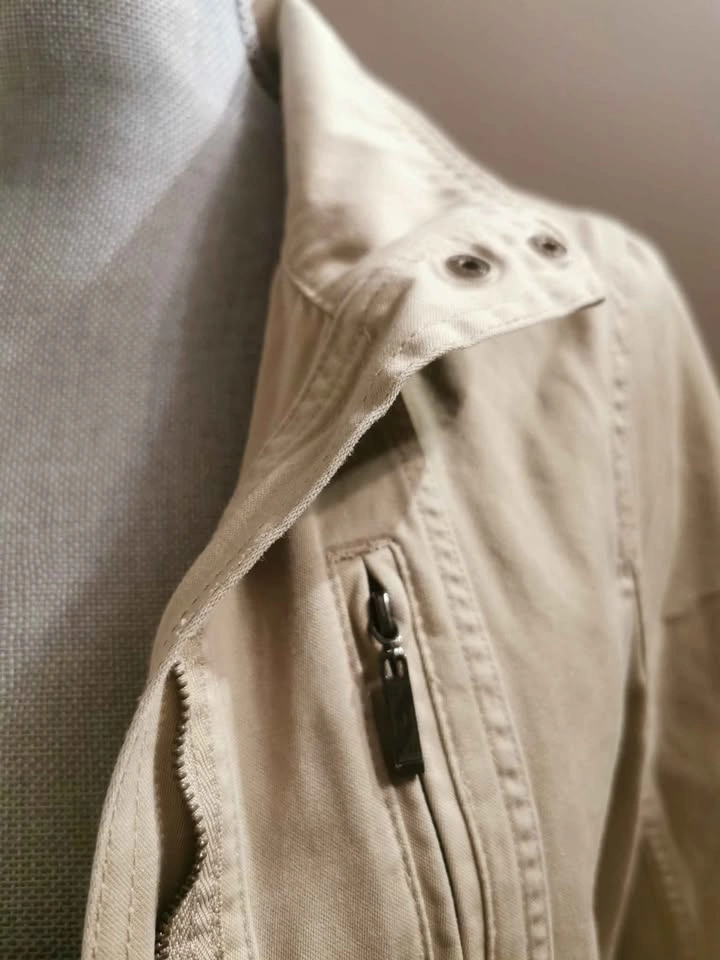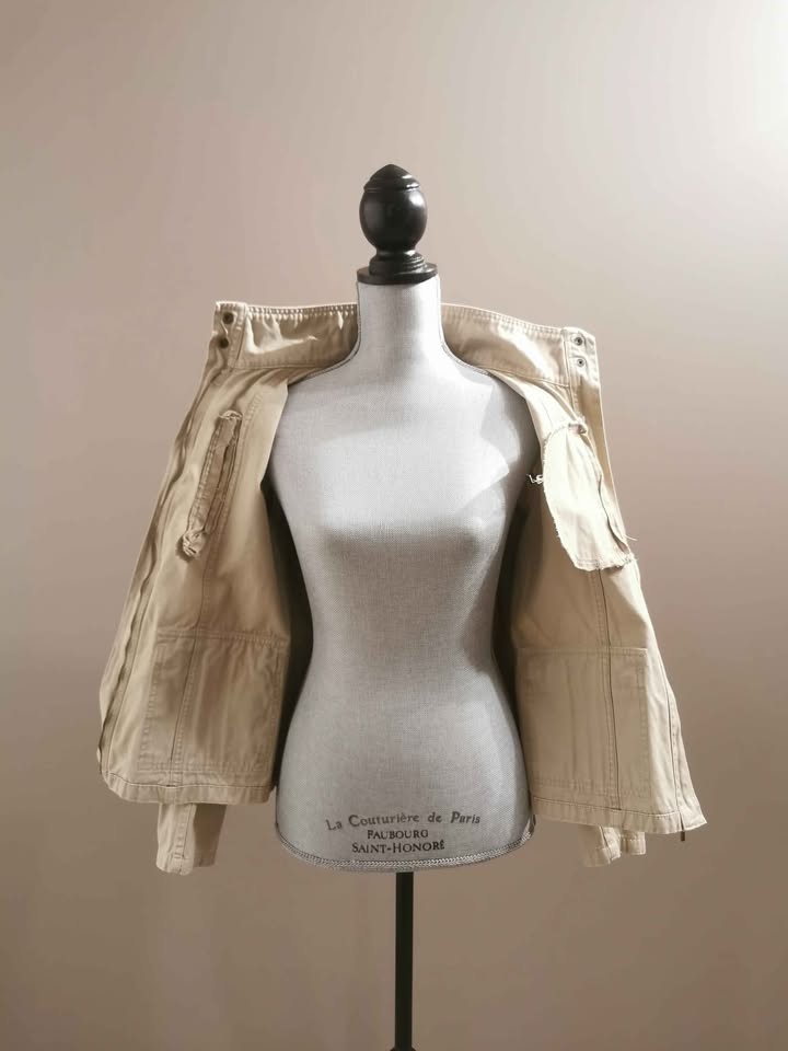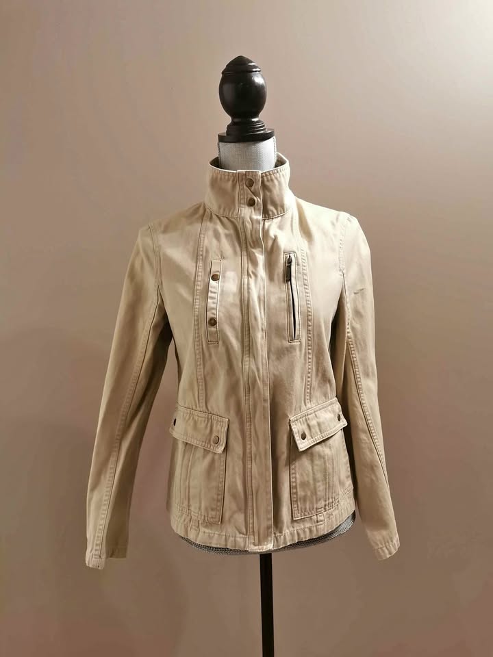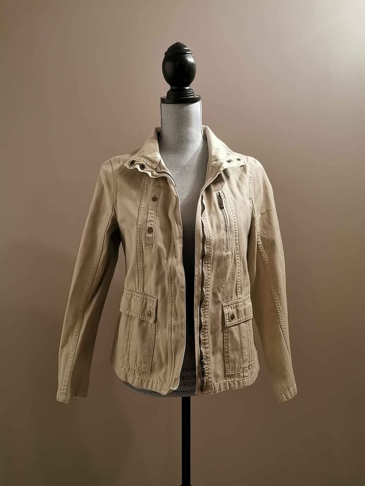 - Stylish light khaki beige women's jacket size Asian L, which is size US/Canada S
