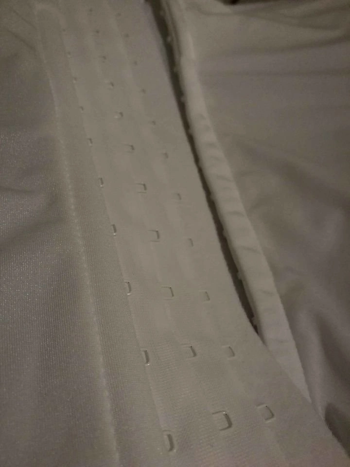 Lace details, push up pads, boning for shaping and support like corsets, silicon lining to help stay put, and adjustable hook and eyes. The band fits slightly smaller while cups fit slightly larger as with most bustiers.