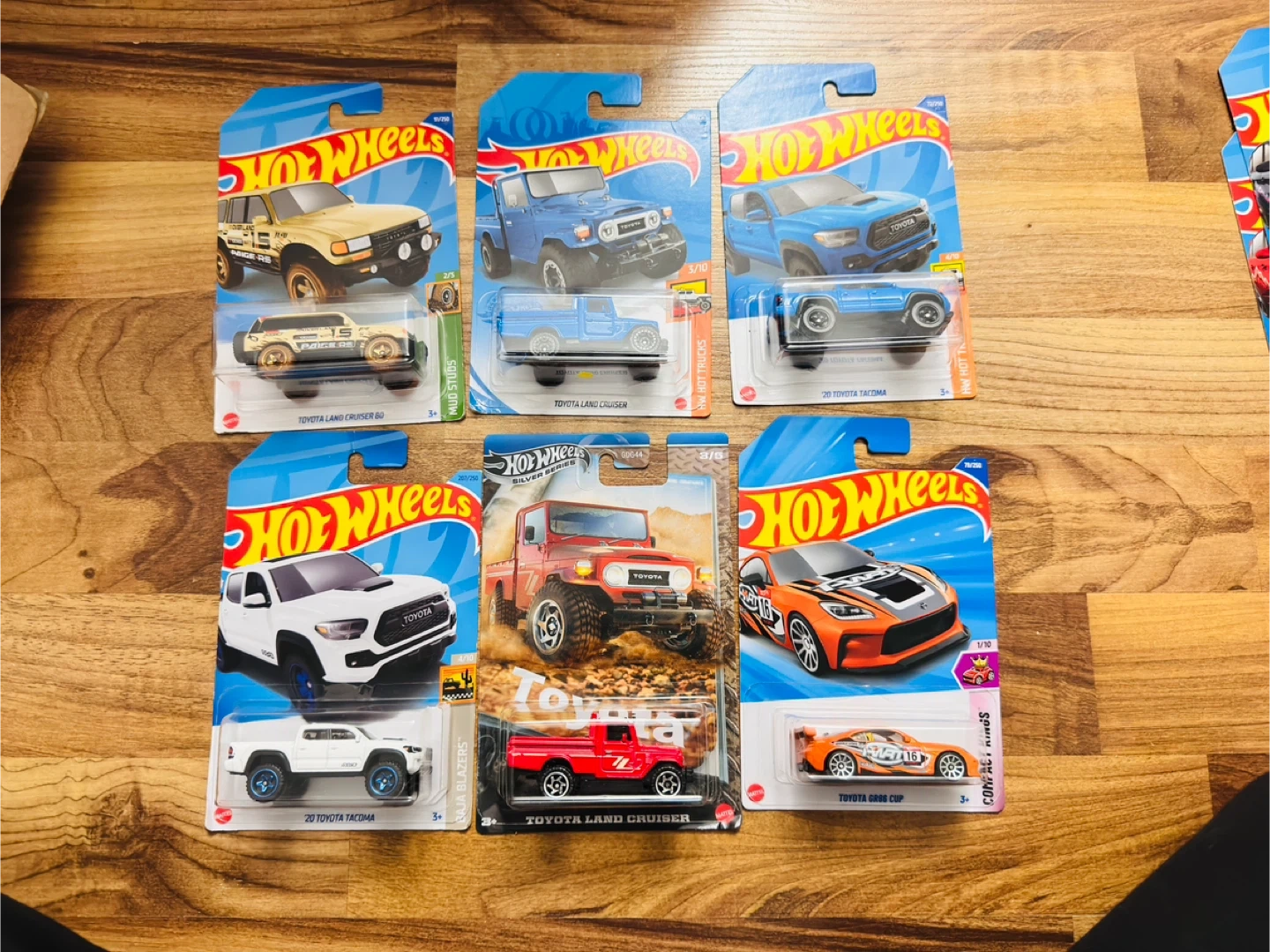 Selling a collection of Hot Wheels Toyota Land Cruisers, all new in their original packaging! Great for collectors or kids who love toy cars. Each car is a unique model and colour.