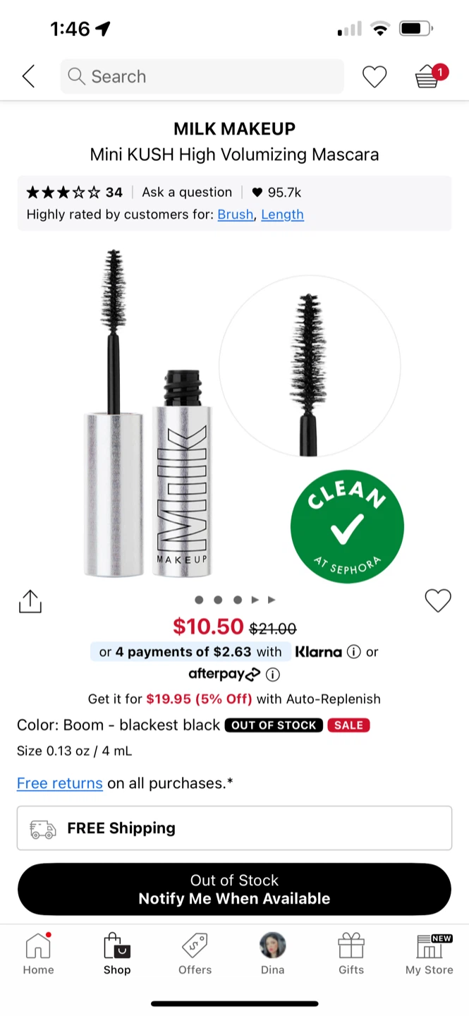 Selling a MILK MAKEUP Mini KUSH High Volumizing Mascara! It's a highly rated mascara known for its volumizing effect. The colour is Boom - blackest black. Size is 0.13 oz / 4 mL