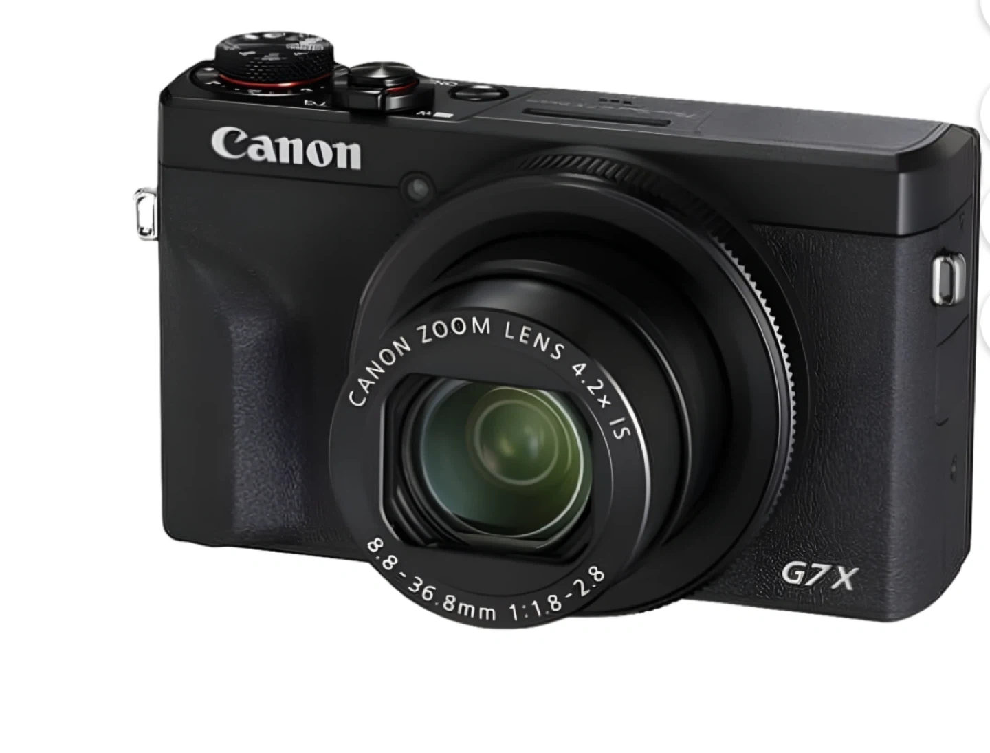 This is a Canon PowerShot G7X Mark III digital camera. It features a Canon Zoom Lens with 4.2x optical zoom. Includes built-in Wi-Fi and a microphone input.