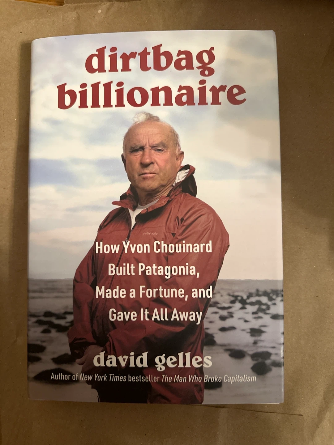 This book tells the story of Yvon Chouinard, the founder of Patagonia. It details how he built his company, made a fortune, and ultimately gave it all away. It's authored by David Gelles.