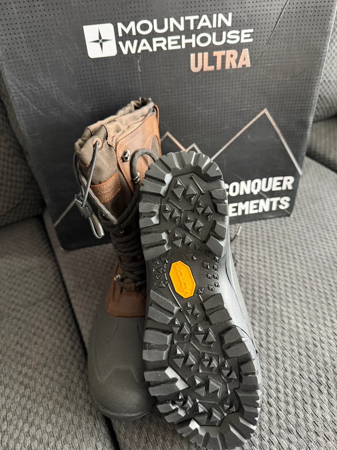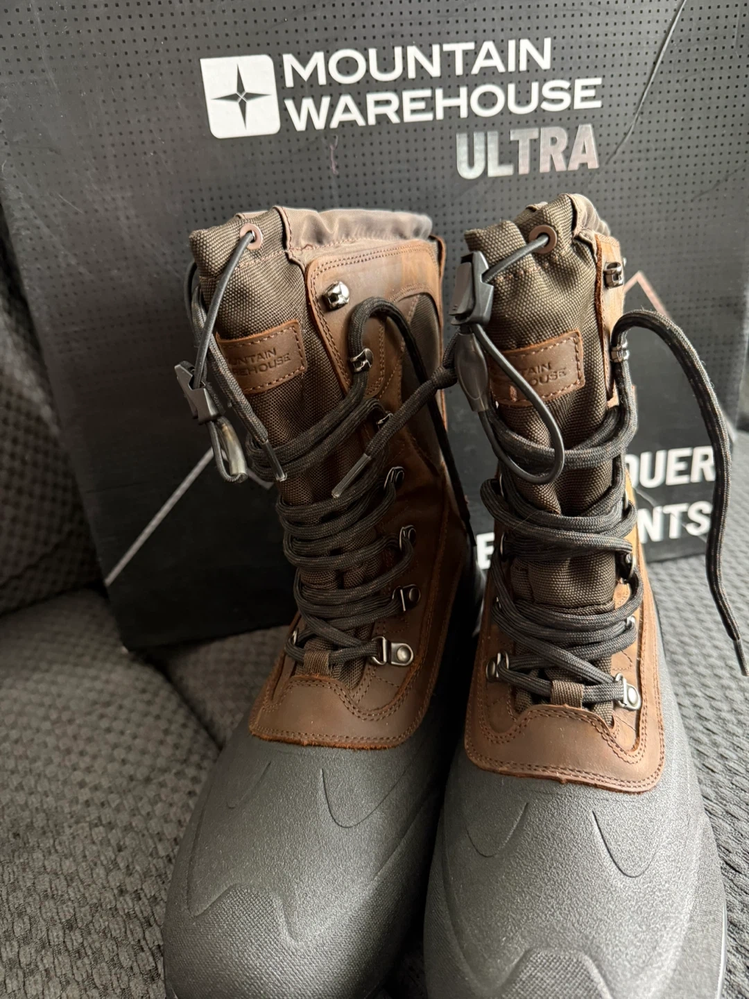 Selling a pair of Mountain Warehouse Summit Ultra Recco snow boots in dark brown! These are a US size 10.