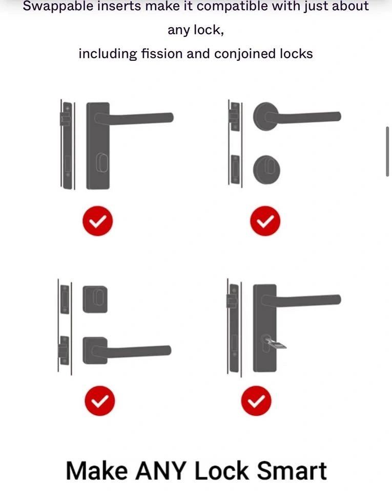 No lock modification or dismantling needed. Simply peel & stick or screw for smart lock access & control.