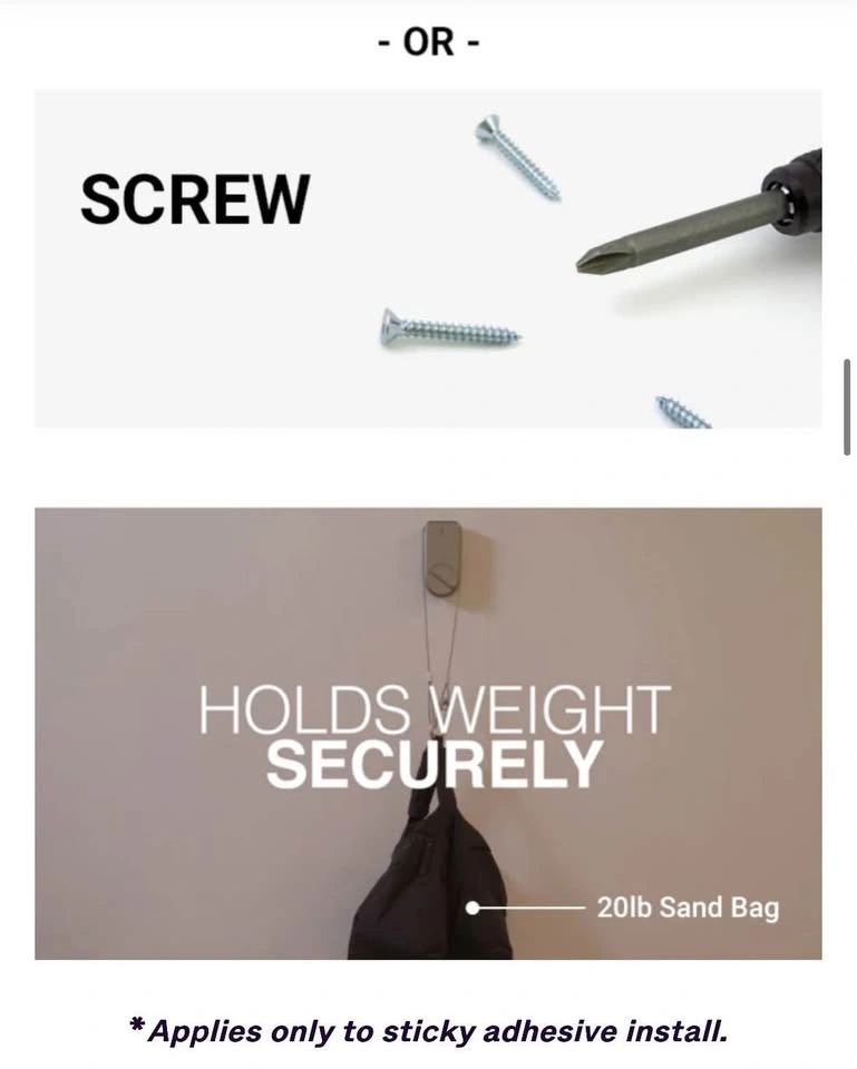 Simply peel and stick to your door using durable but removable adhesive. For permanent installs, use the screws and screwdriver provided. No modification is required of the current door lock.