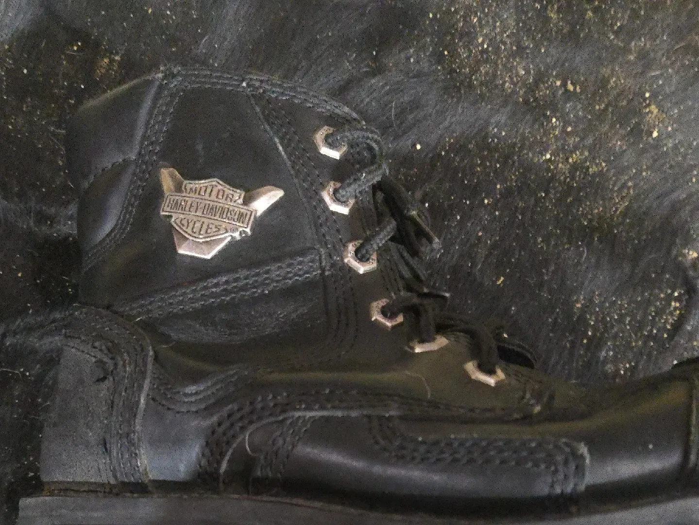 Selling a pair of Harley-Davidson black leather boots. They have a cool, classic look with the Harley-Davidson logo. Great for adding some edge to your style!, or boots on your bike,