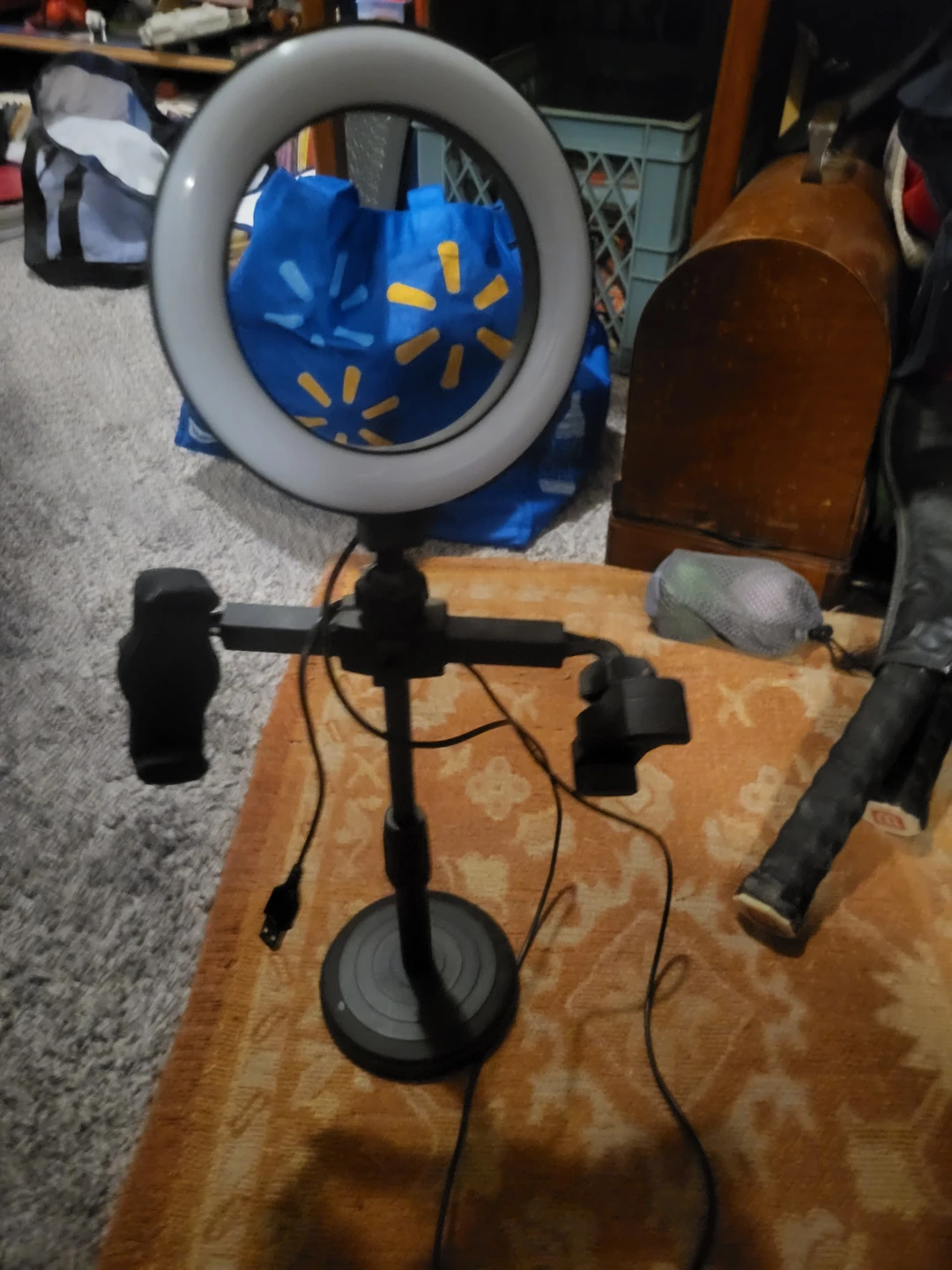 Selling an LED ring light that comes with phone holders. It's perfect for video calls, taking photos, or creating content! It's in great condition and ready to use