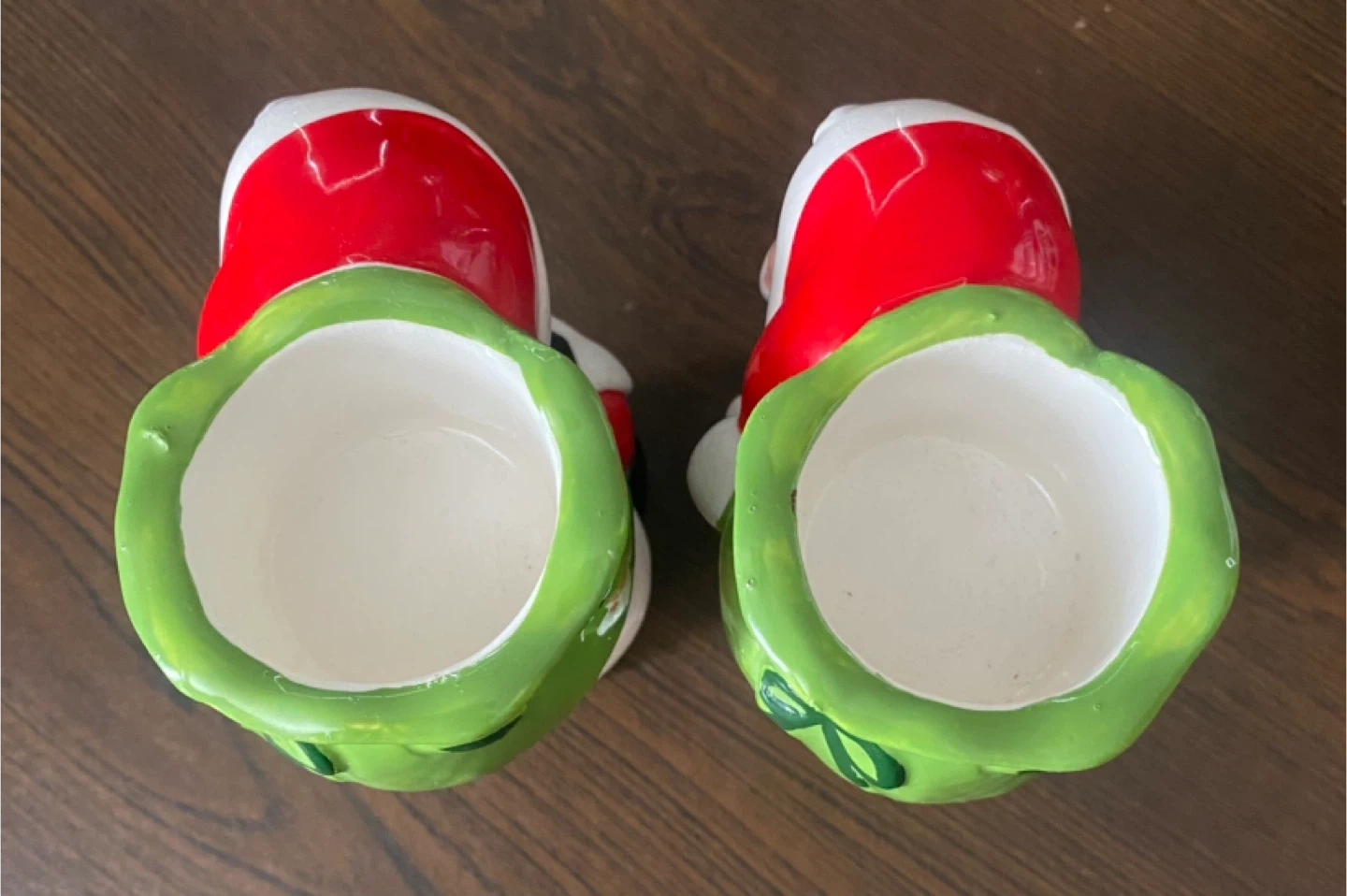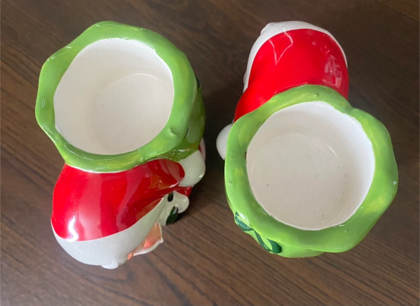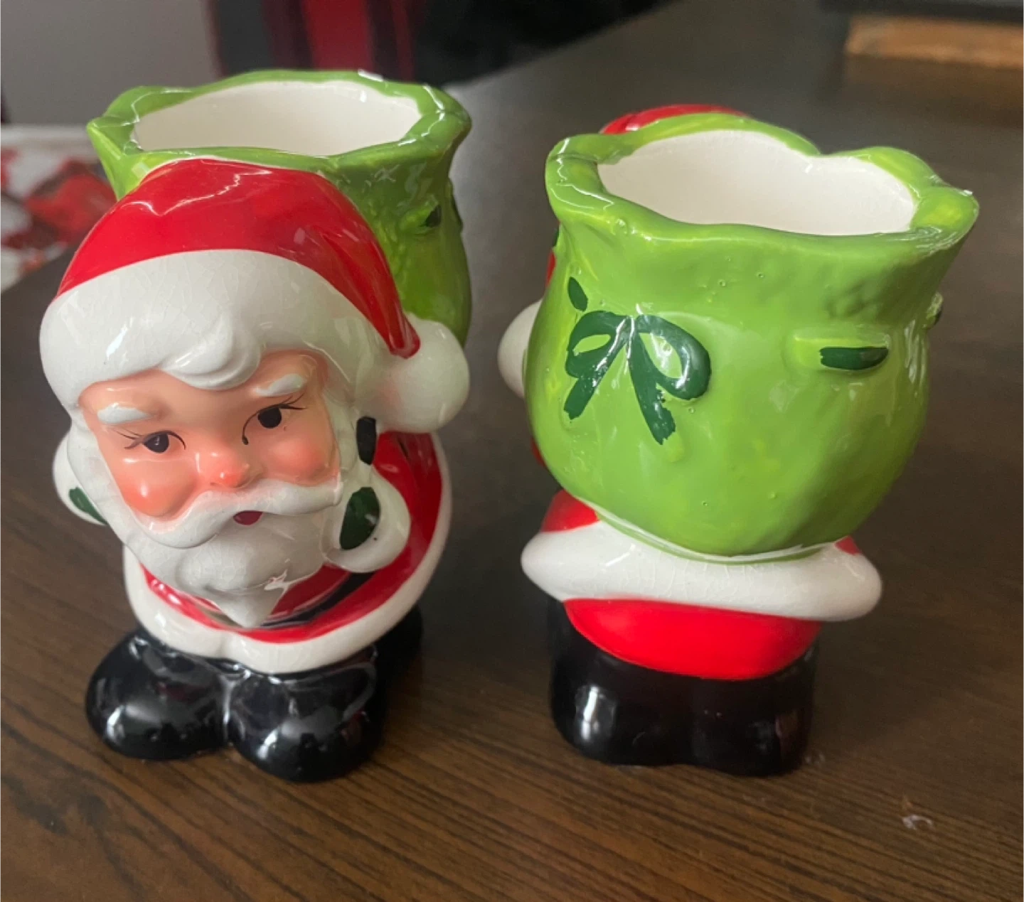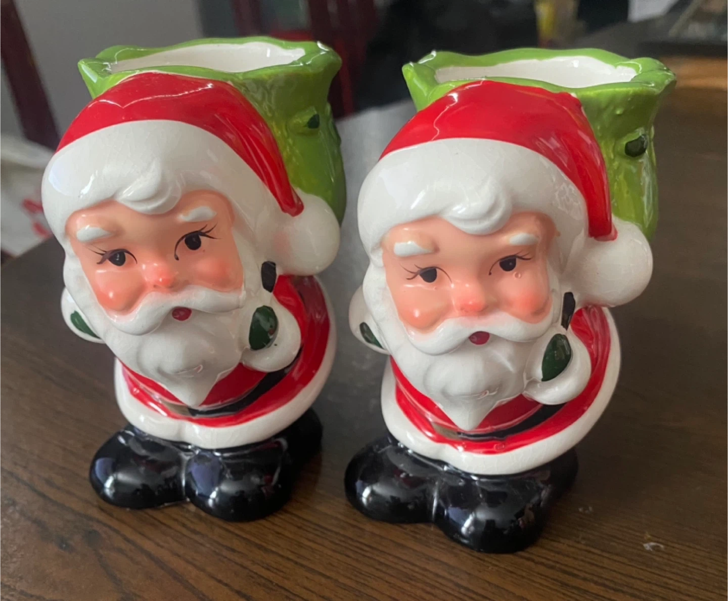 Here's a set of two adorable ceramic Santa decor! They're perfect for adding a touch of holiday cheer to your home or garden.