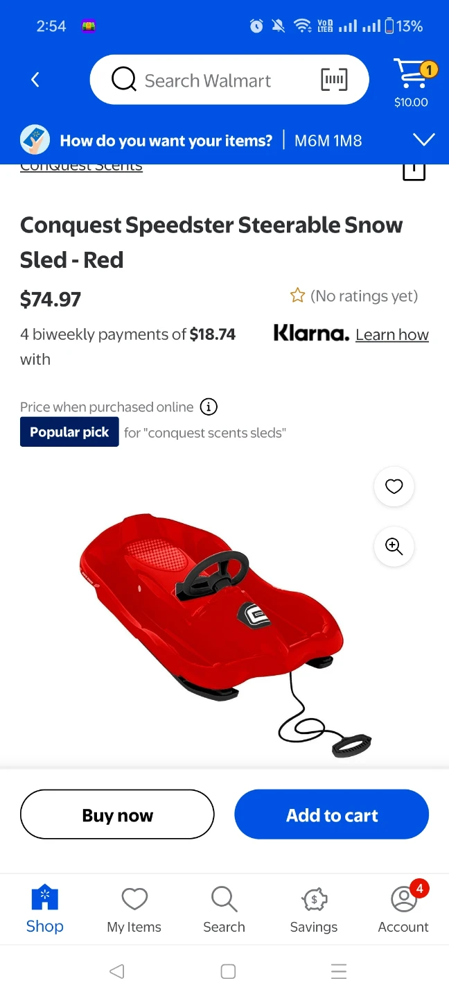 1 / 11 / 1Buy & SellConquest Speedster Steerable Snow Sled - RedConquest Speedster Steerable Snow Sled - Red$20Selling a Conquest Speedster steerable snow sled in red! It's ready for some winter fun. Brandnew WHERE TO MEETSilverthorn schoolView MapSELLERverifiedjebaEglinton W27813 reviews2 chatsΒ·6 favoritesΒ·48 viewsSEND CHAT TO SELLERHi jeba! Iβm interested in your listing.Hi jeba! Iβm interested in your listing.Get the Karrot app to chatSign In to chat