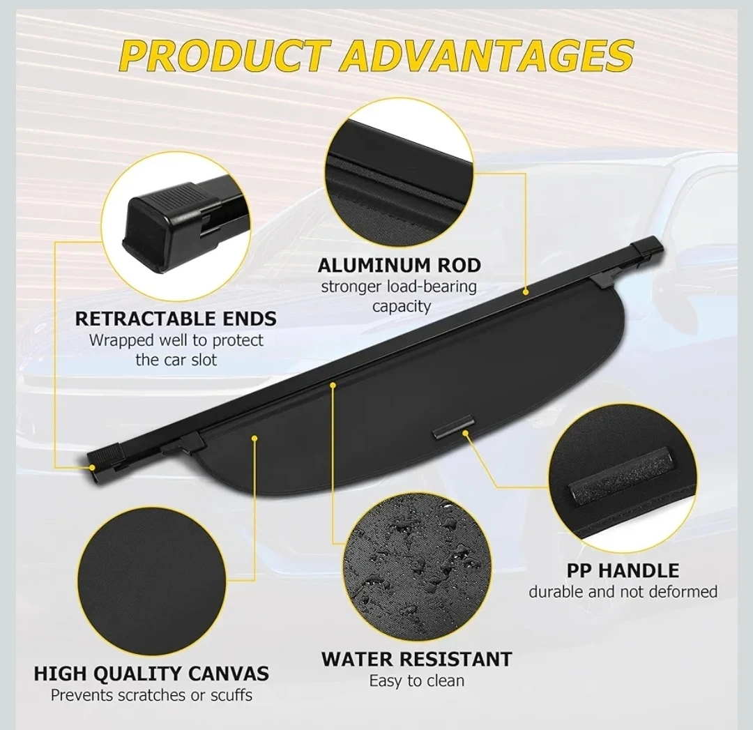 CRV 2012-2022 Retractable Rear Cargo Cover, UV protection, Theft Protection avoid seeing through.