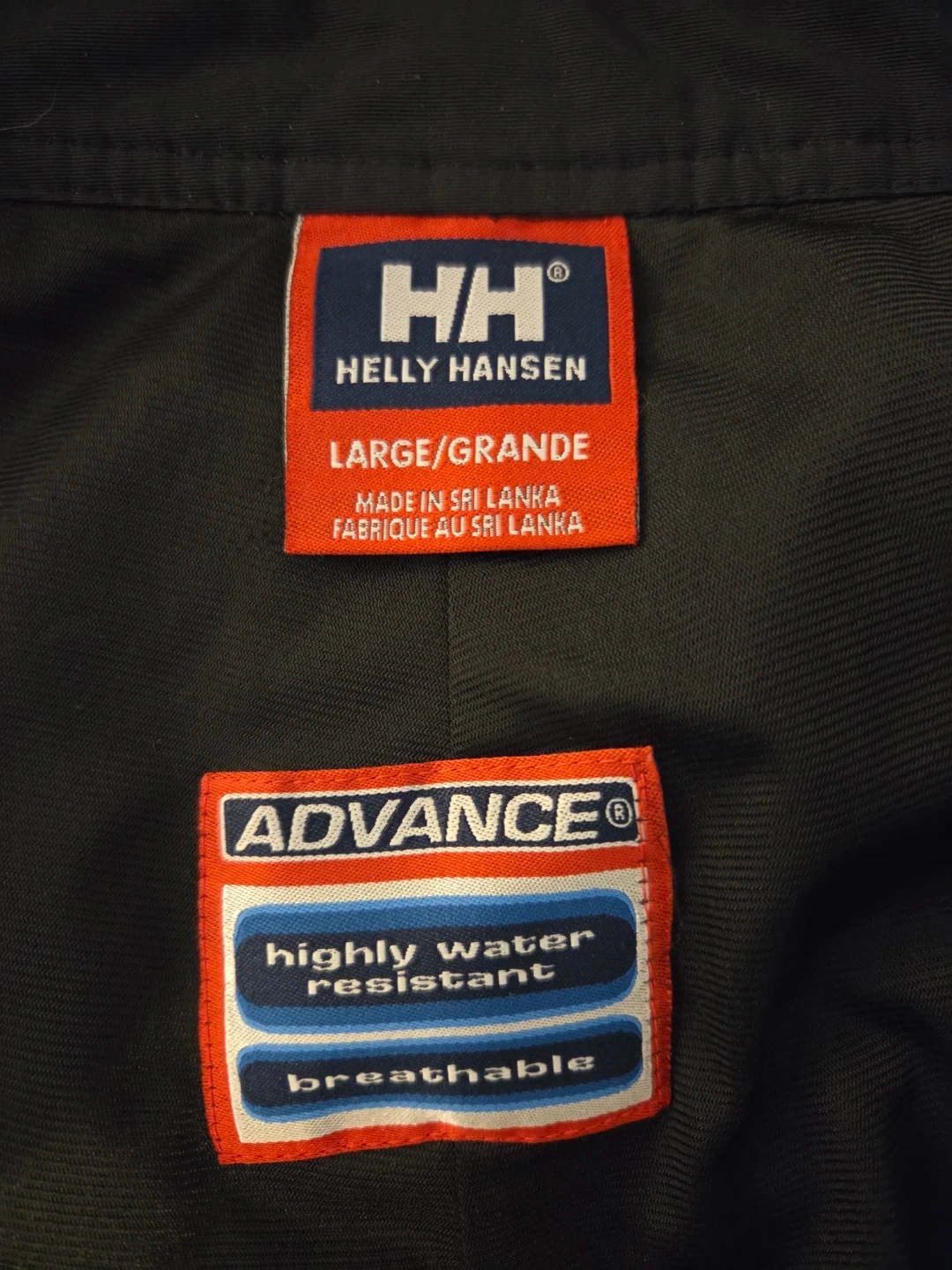 Here are some Helly Hansen black ski pants in size large. They are highly water resistant and breathable, perfect for hitting the slopes this winter!