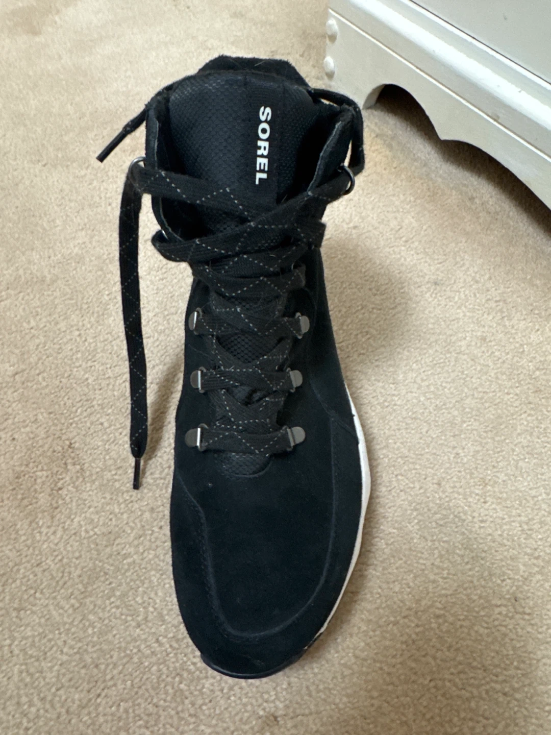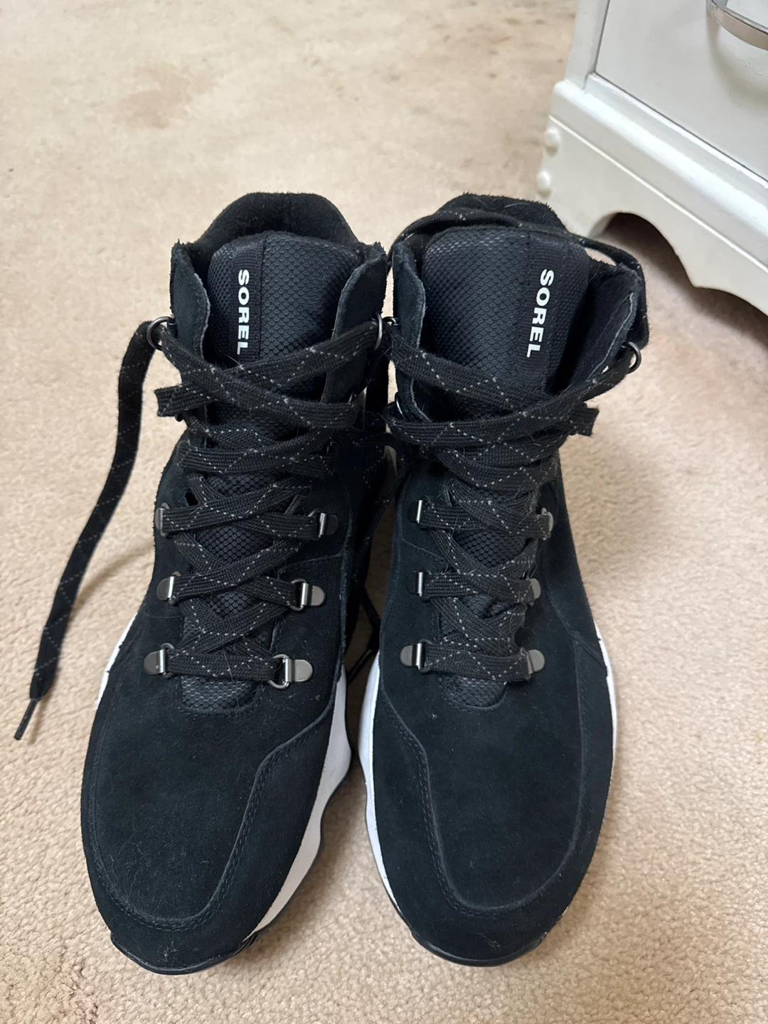 Selling a pair of Sorel winter hiking boots in black! They're in great shape (worn once last year) and ready for the snow. Perfect for hiking or just getting around town in the winter.