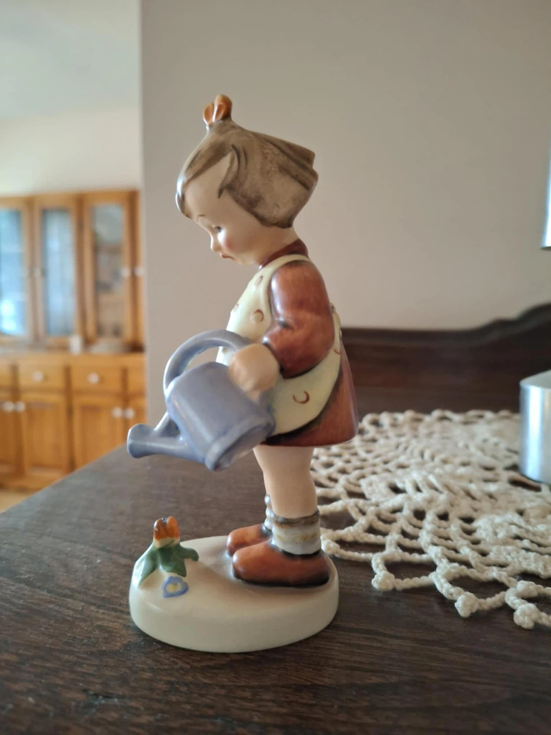 Selling a Hummel figurine of a girl with a watering can. It's in great condition and would make a lovely addition to any collection!