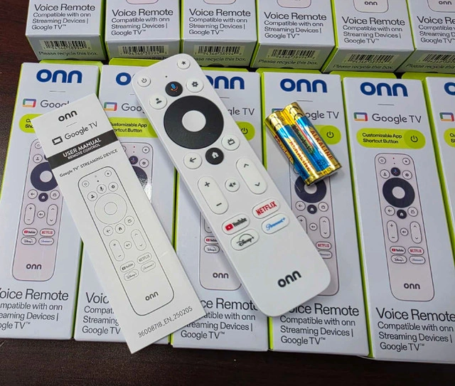 ▶️ Please note that this is an original onn replacement remote and is imported from Walmart USA. These original remotes are not sold in Canada at the moment, they only sell aftermarket copies that are inferior to the original◀️ Product details The onn Voice Remote is a versatile replacement remote designed for onn Streaming devices and Google TV. It is compatible with most onn streaming devices and Google TV, ensuring seamless integration with your existing setup. The remote features a customizable app shortcut button, allowing you to quickly access your favorite apps with a single press. Additionally, it comes equipped with Google Assist, enabling voice control for effortless navigation and search. The onn Voice Remote combines convenience and functionality, making it an essential accessory for an enhanced streaming experience. • onn Voice Remote, (White) • Replacement voice remote for onn streaming devices and Google TV • Compatible with most onn streaming devices and Google TV • Customizable app shortcut button • Voice remote with Google Assist • Compatible with other devices like Chromecast with Google TV, Google 4K Streamer, Firesticks and any other streaming boxes that use Bluetooth. What’s in the Box? 1 - voice remote (requires 2 AAA batteries, (batteries are included) 1 - Quick Start Guide Check out our other listings for other onn streaming products. Pick up in our Scarborough North office. close to Markham Rd. & Steeles by appointment only.