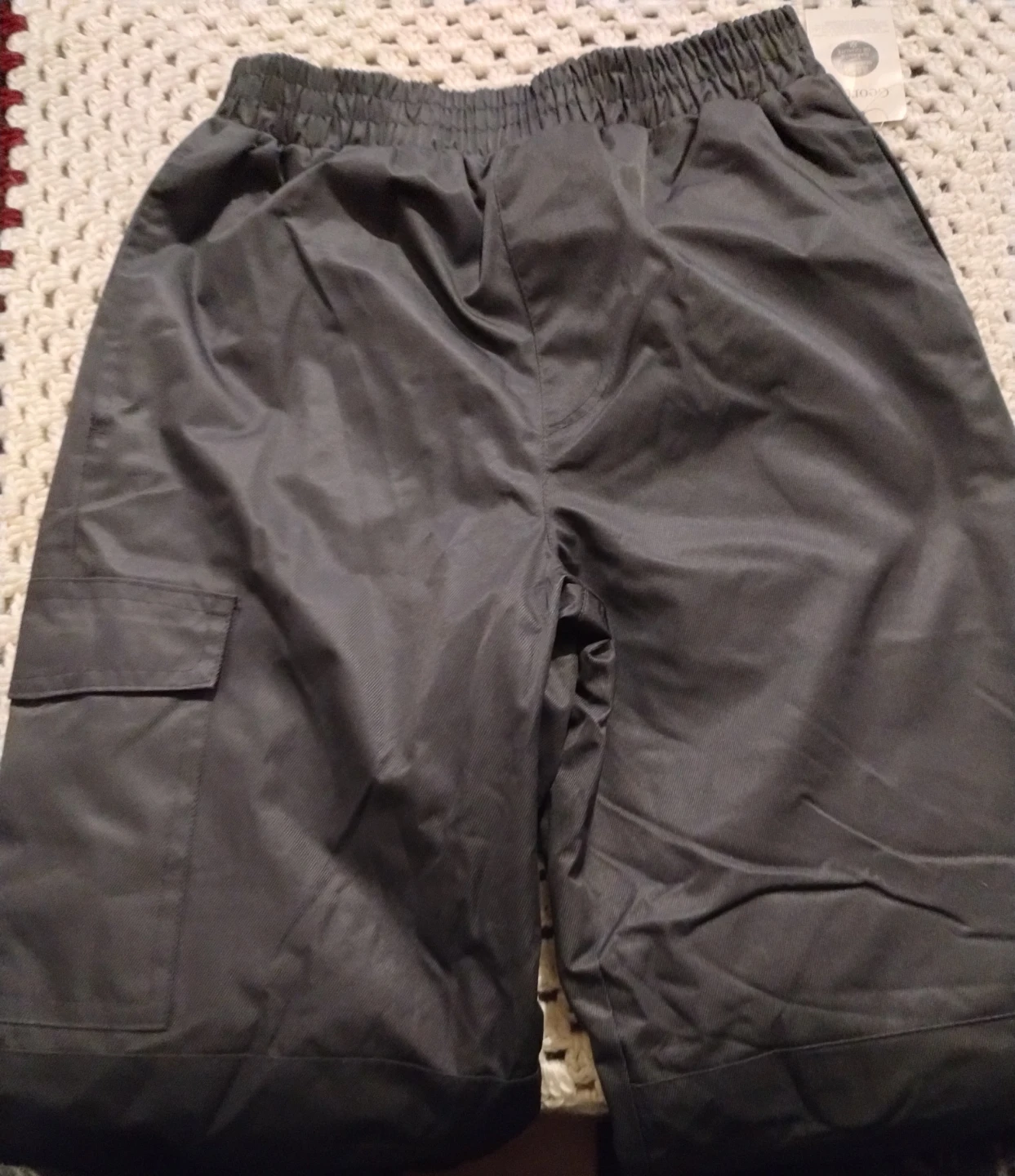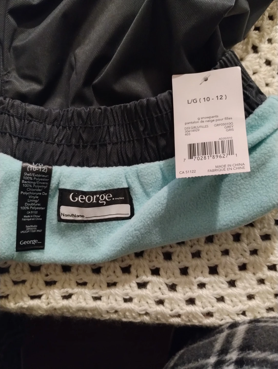 These are a new pair of George snowpants, size L/G (10-12). The outer shell is 100% polyester and the lining is also 100% polyester. They are grey in colour, perfect for keeping your little one warm and dry this winter!