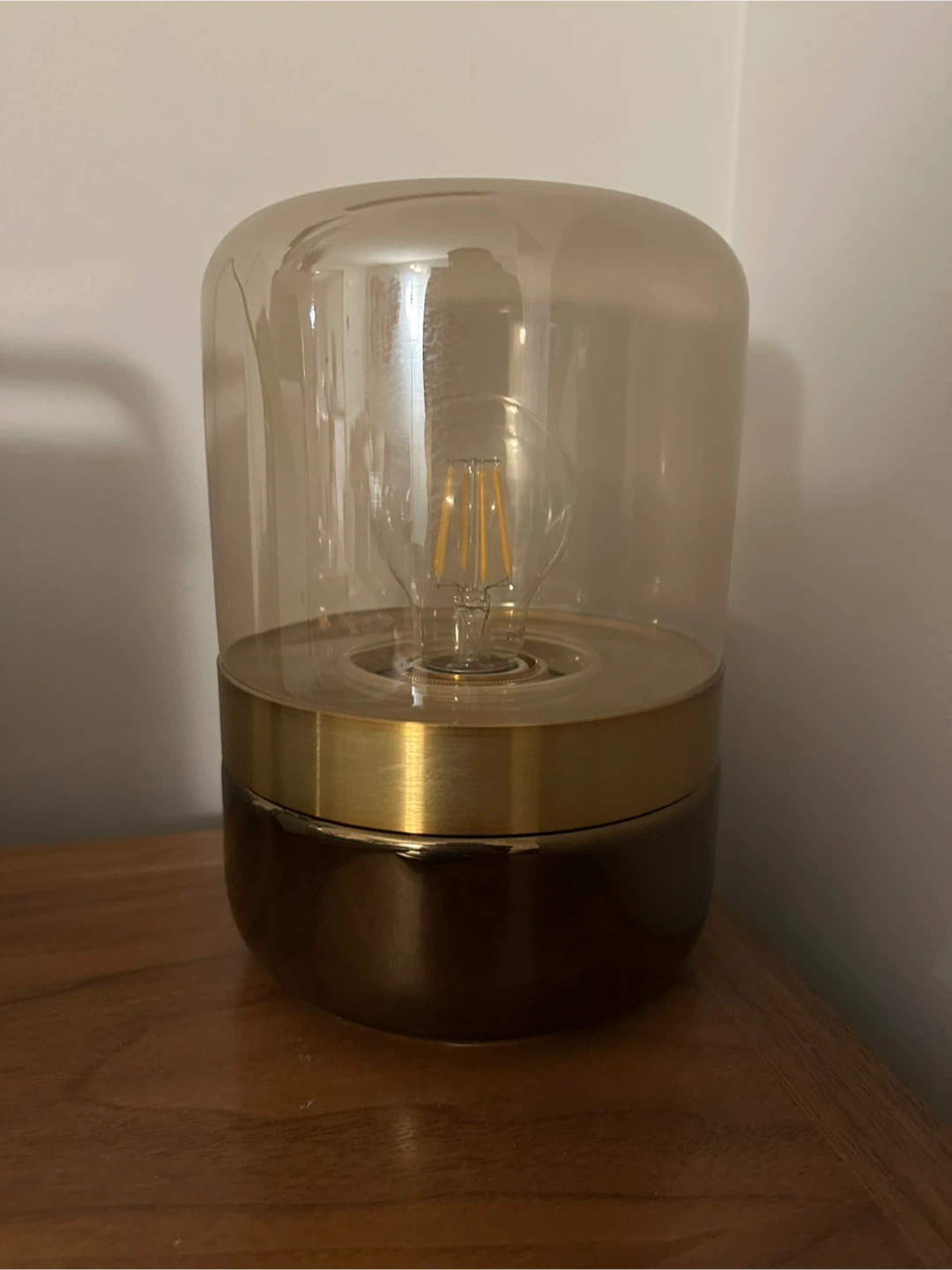 Selling a West Elm table lamp with a glass top and brass finish. It's in perfect condition.