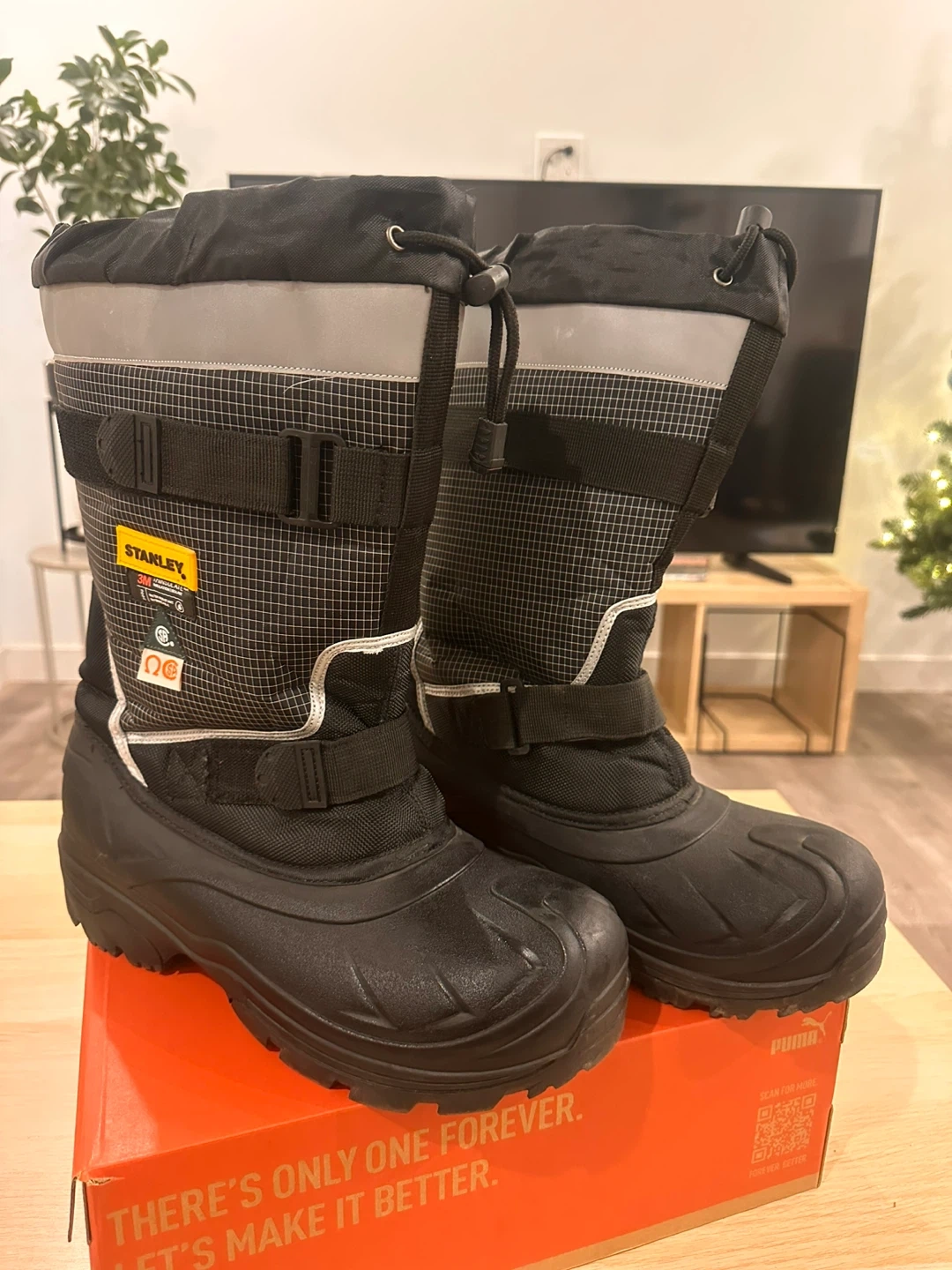 Selling a pair of Stanley Protective Footwear boots in size 10 US. They are black and in good condition. The box is included!