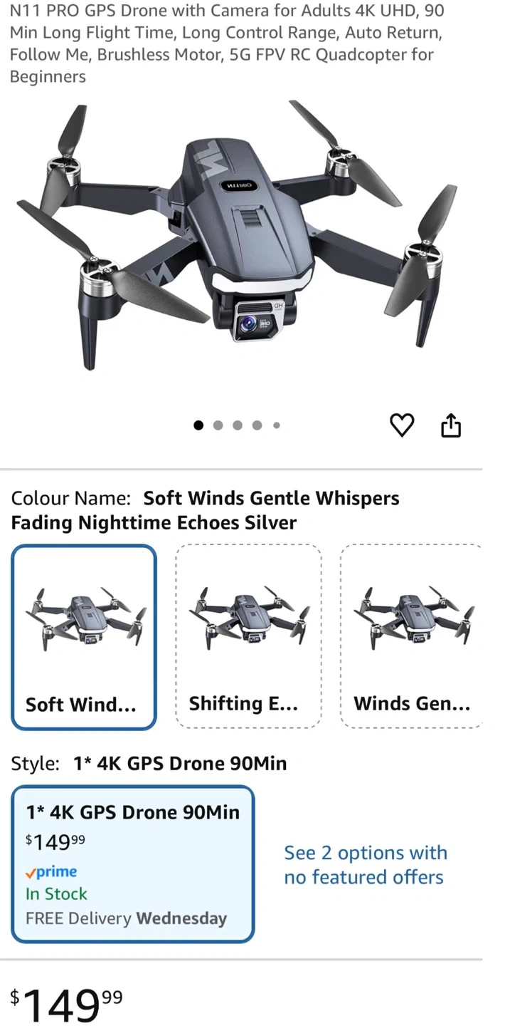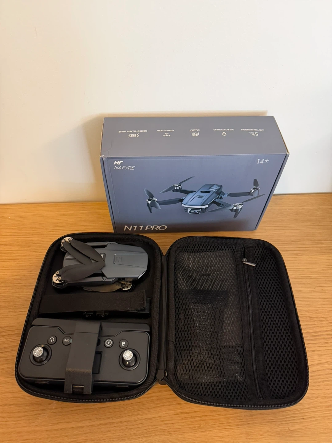 Selling a Nafyre N11 PRO GPS Drone in excellent condition! It comes with a camera suitable for adults, offering 4K UHD video and a long flight time of 90 minutes. The drone features a long control range, auto return, follow me mode, a brushless motor, and 5G FPV RC quadcopter functionality, perfect for beginners.