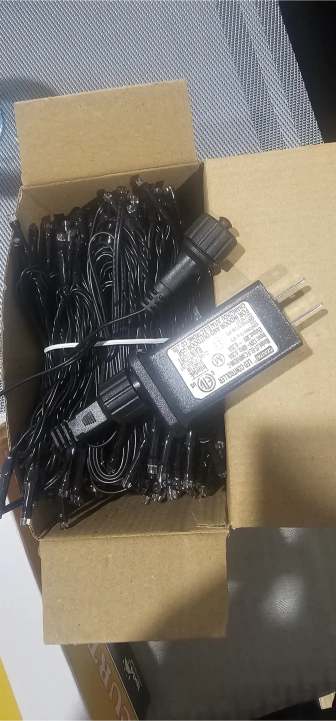 Selling a set of LED string lights, perfect for indoor or outdoor use! They come with a controller. The power unit is raintight, so no worries about using them outside. Includes the original box