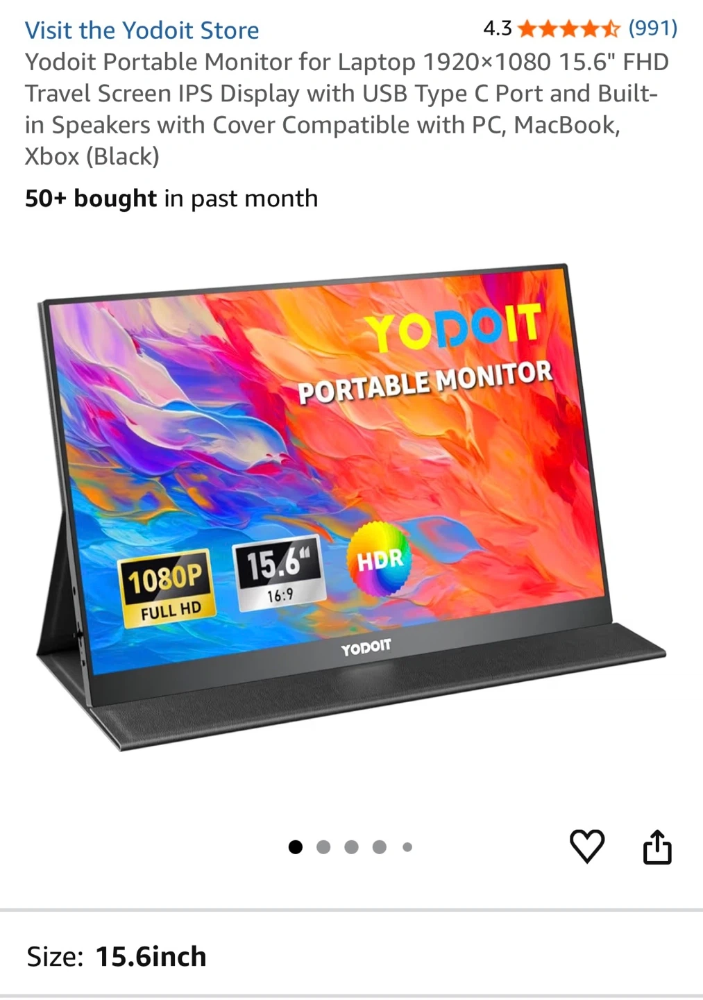Selling a Yodoit portable monitor, it's in great shape and comes with the box! It features a 15.6 inch FHD 1920x1080 travel screen IPS display. It also has a USB Type C port and built-in speakers. Compatible with PC, MacBook, and Xbox
