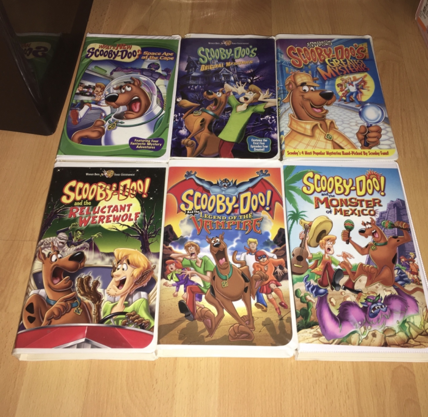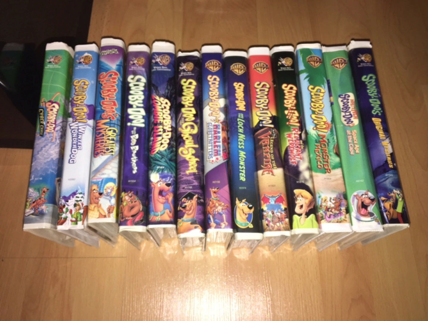 Selling a collection of 13 Scooby-Doo VHS tapes.