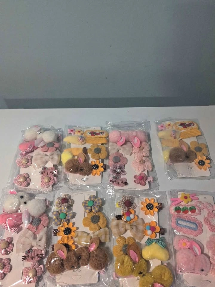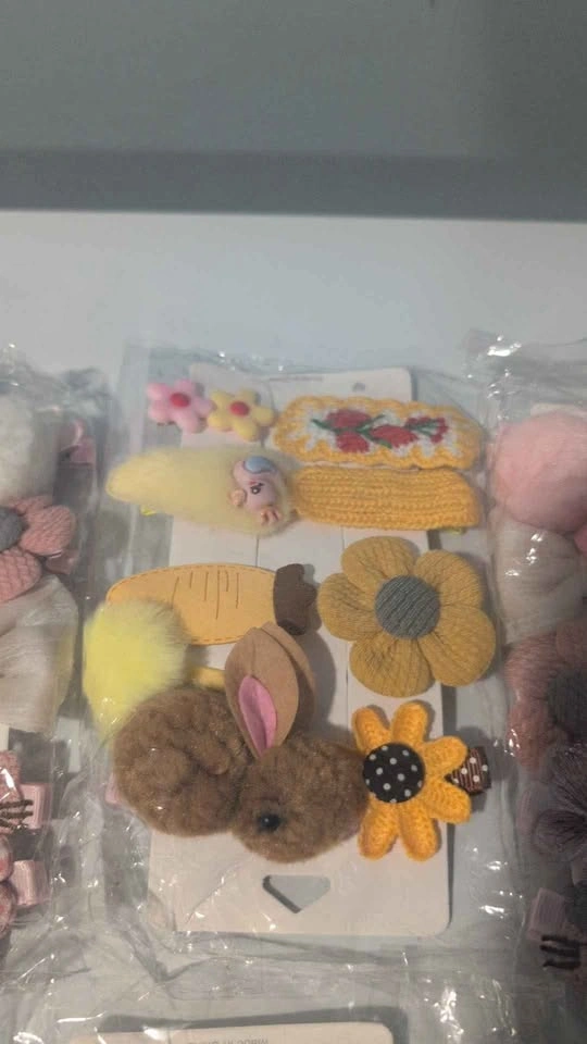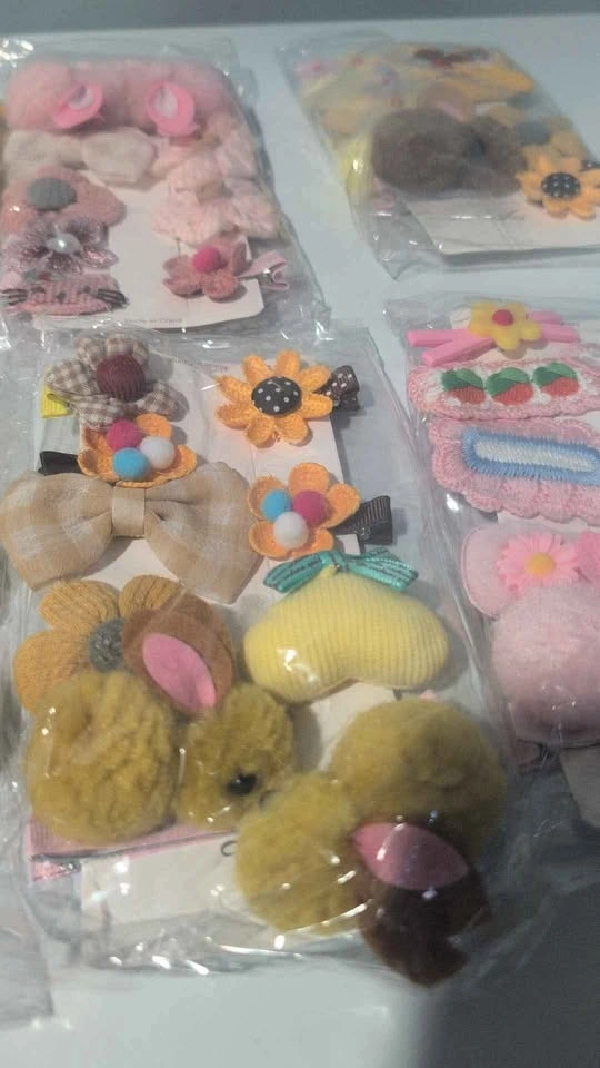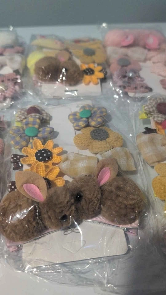 Brighten up any outfit with these adorable kids’ hair clip sets — soft, colorful, and full of fun details like bunnies, flowers, bows, and pom-poms!