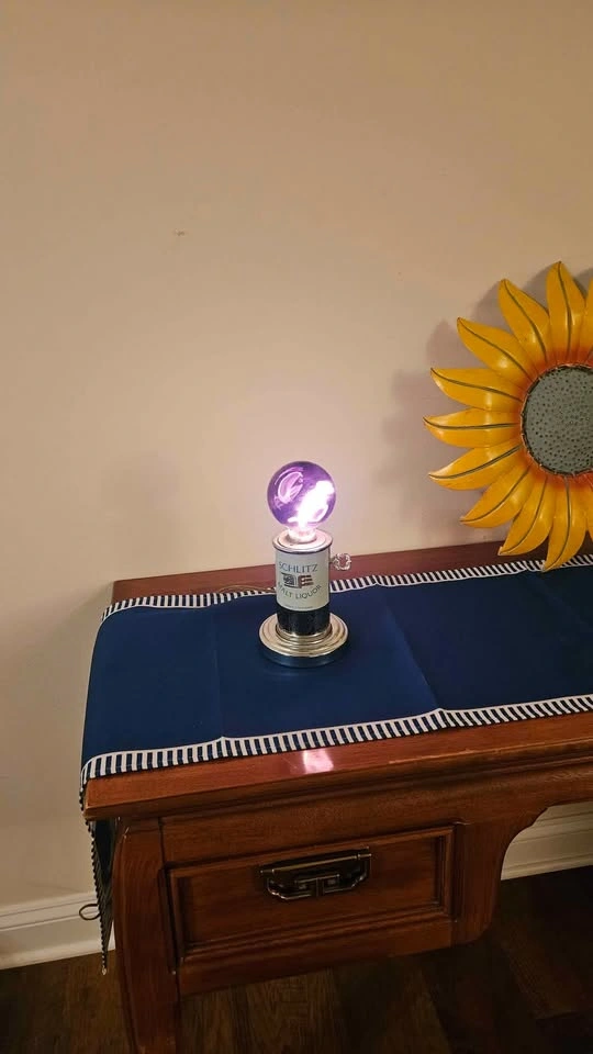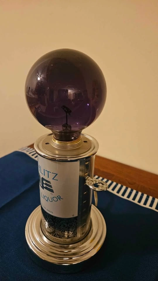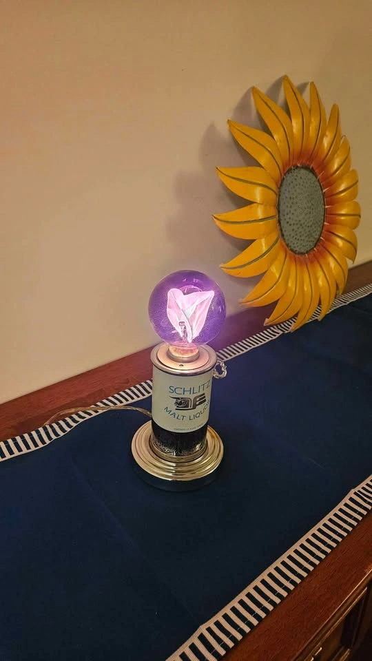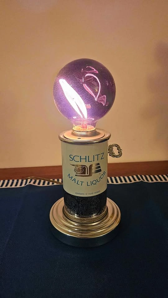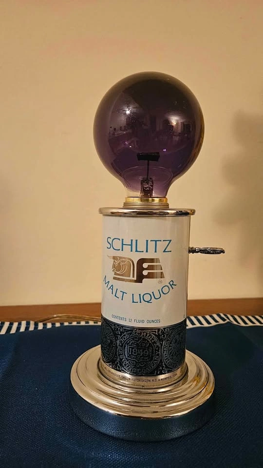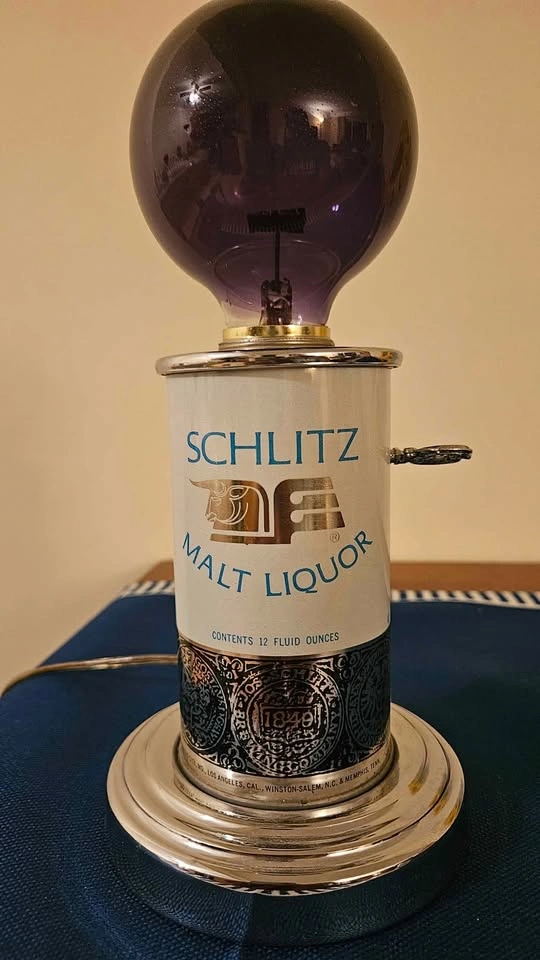 Vintage Schlitz Beer Can Table Light: Retro Flickering Bulb in good condition.