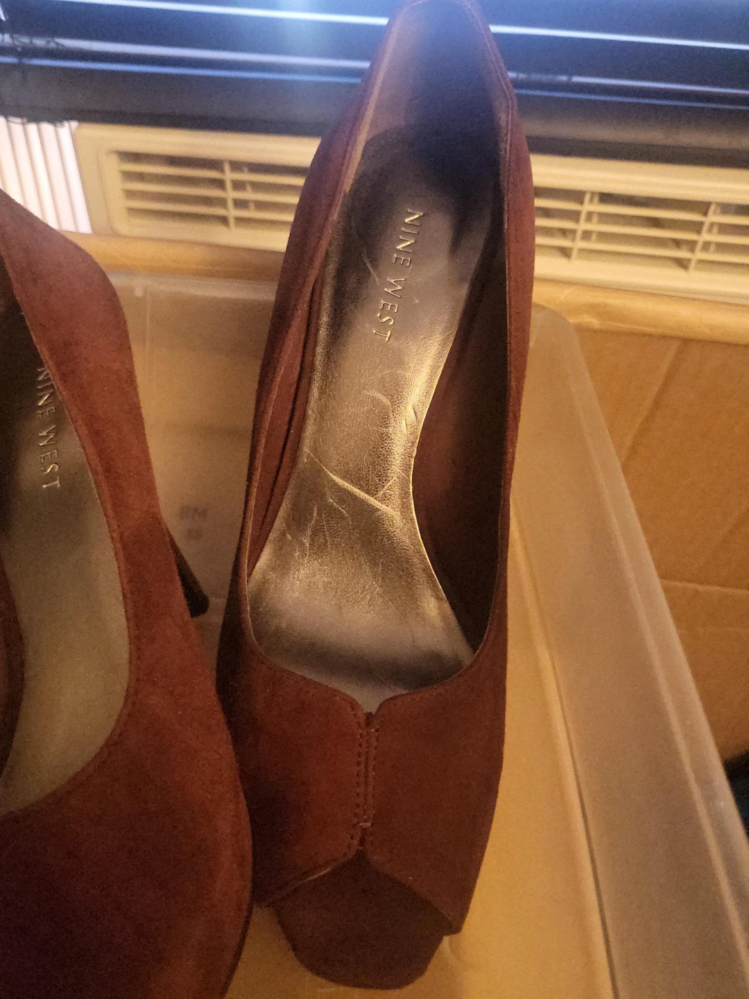 Buy & SellNine West Red Suede Heels Size 8MNine West Red Suede Heels Size 8M$17Selling a pair of Nine West heels in a beautiful red suede! They're a size 7 1/2 and in great condition. Perfect for dressing up any outfit!ConditionGoodSize7 1/20 chats·0 favorites·4 viewsSELLER950896University Heights100 reviewsWHERE TO MEETCheck Location